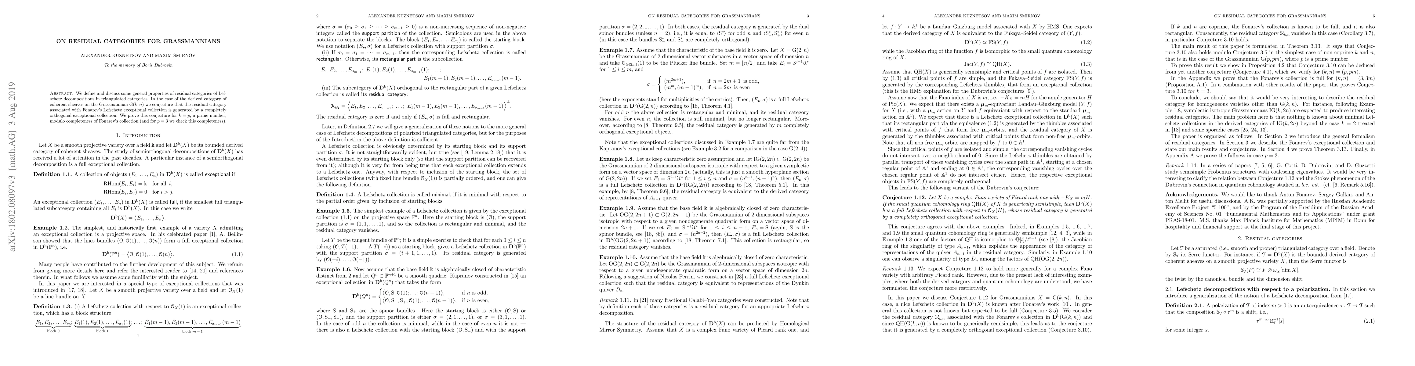 Researchers studied residual categories of Lefschetz decompositions in triangulated categories, focusing on the Grassmannian, and conjectured that a specific collection generates the residual category.
