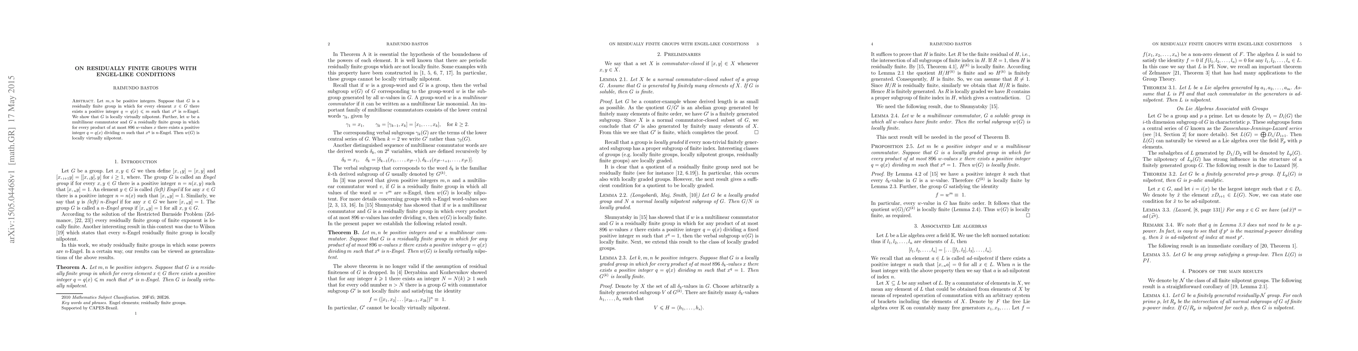 This paper demonstrates that residually finite groups where every element satisfies an Engel-like condition (being $n$-Engel after some power $q$) are locally virtually nilpotent. It further extends this result to multilinear commutators, showing that the subgroup generated by $w$-values under similar Engel-like conditions is also locally virtually nilpotent.