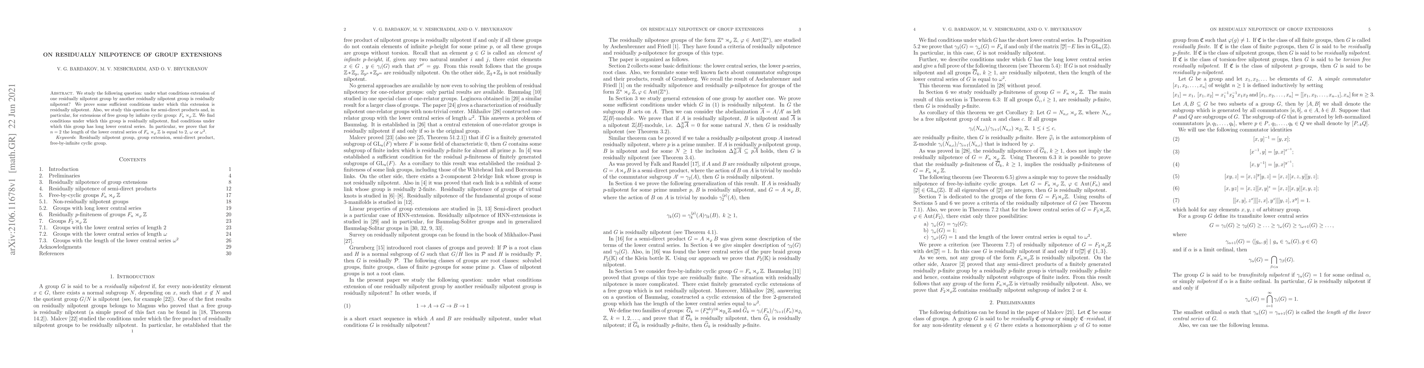 This paper investigates conditions for the residual nilpotence of group extensions, proving sufficient conditions for such extensions to remain residually nilpotent. It specifically examines semi-direct products, notably the extension $F_n \rtimes_{\varphi} \mathbb{Z}$, and finds conditions for its residual nilpotence and the length of its lower central series, particularly showing that for $n=2$, the length is 2, $\omega$, or $\omega^2$.