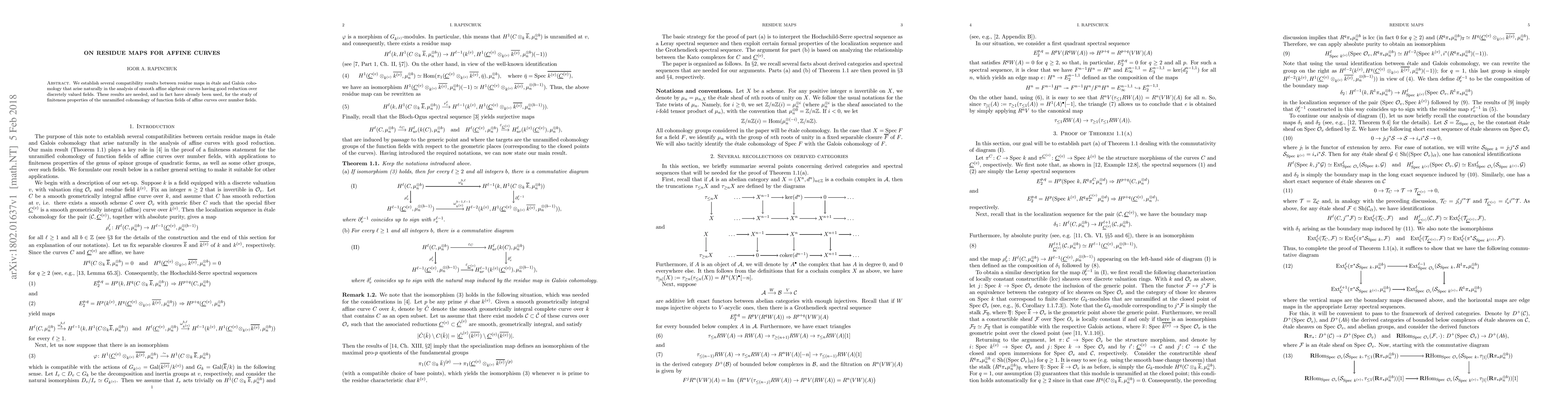 We establish several compatibility results between residue maps in \'etale and Galois cohomology that arise naturally in the analysis of smooth affine algebraic curves having good reduction over discretely valued fields. These results are needed, and in fact have already been used, for the study of finiteness properties of the unramified cohomology of function fields of affine curves over number fields.