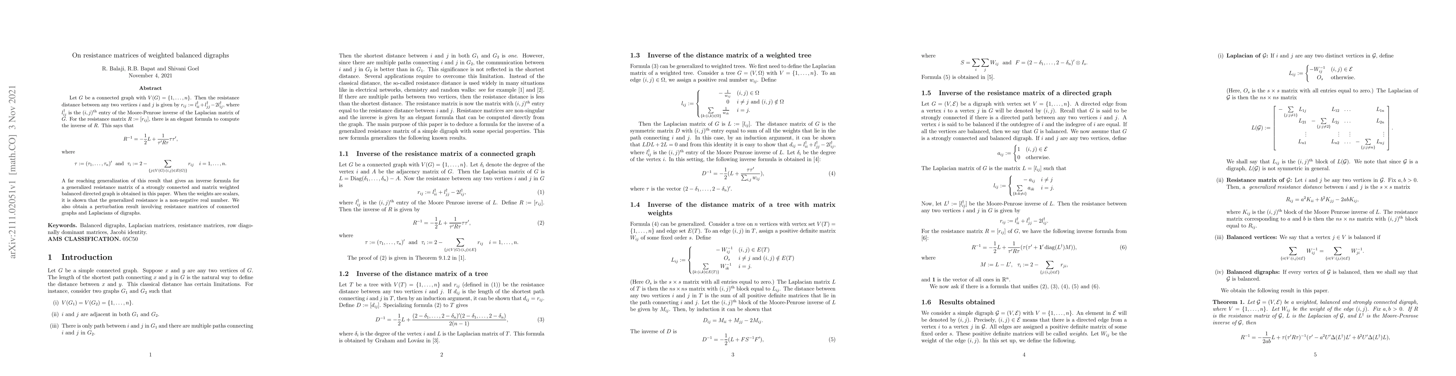 The paper provides a generalized inverse formula for resistance matrices in the context of matrix-weighted balanced directed graphs, along with a perturbation result linking resistance and Laplacian matrices.