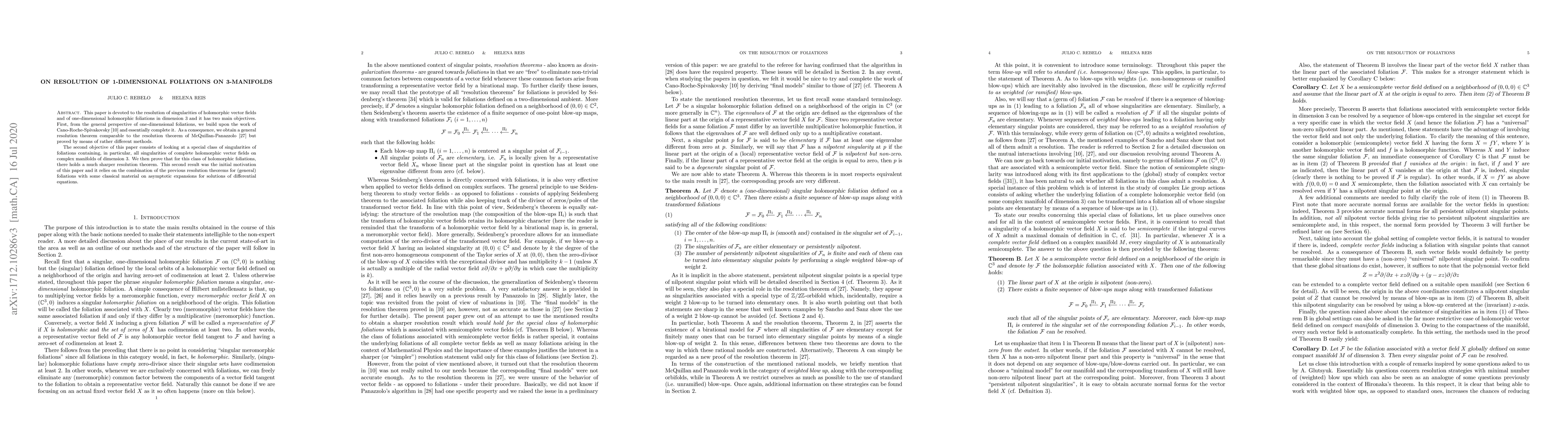 This paper resolves singularities of holomorphic vector fields and one-dimensional foliations in 3-manifolds, completing prior work and proving a general resolution theorem. It also establishes a sharper resolution theorem for a specific class of foliation singularities, leveraging classical differential equation techniques.