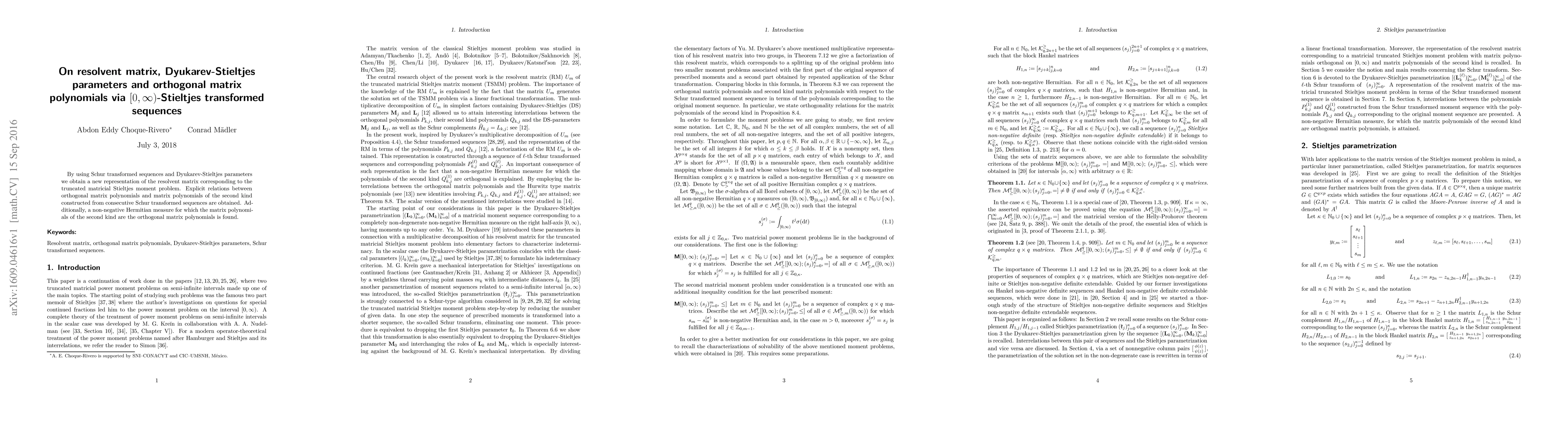 By using Schur transformed sequences and Dyukarev-Stieltjes parameters we obtain a new representation of the resolvent matrix corresponding to the truncated matricial Stieltjes moment problem. Explicit relations between orthogonal matrix polynomials and matrix polynomials of the second kind constructed from consecutive Schur transformed sequences are obtained. Additionally, a non-negative Hermitian measure for which the matrix polynomials of the second kind are the orthogonal matrix polynomials is found.