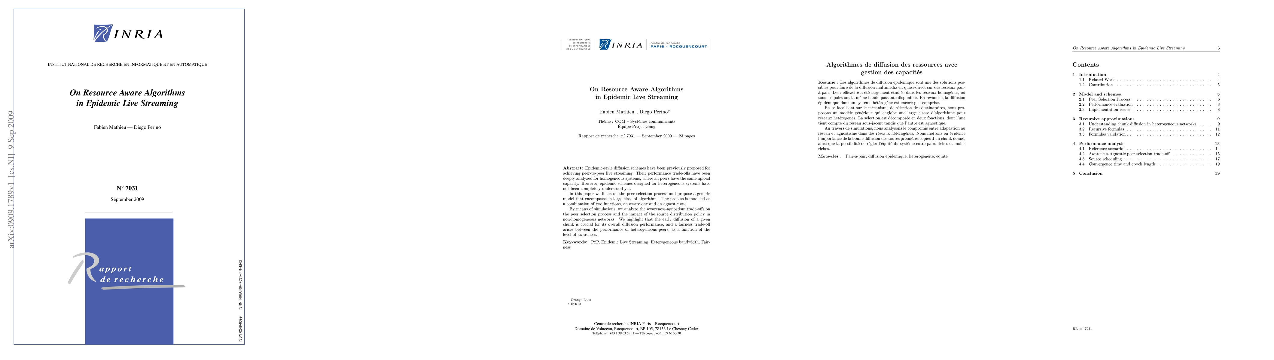 The paper introduces a unified model for resource-aware peer selection in epidemic live streaming, providing recursive formulas to approximate the chunk dissemination process.