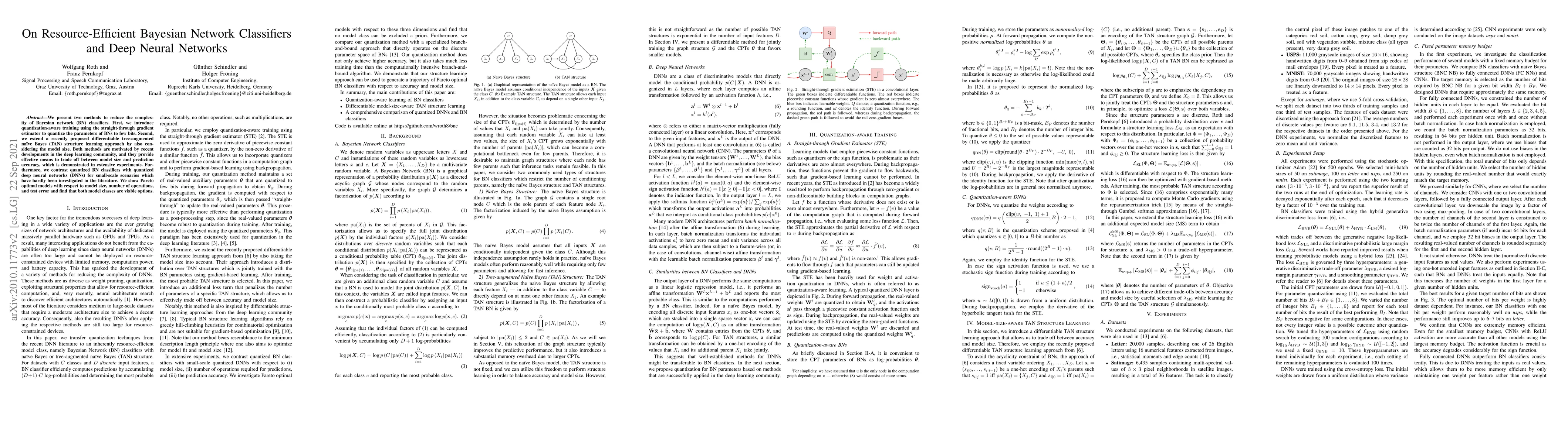 This paper proposes two methods to reduce the complexity of Bayesian network classifiers: quantization-aware training and a size-aware structure learning approach. It contrasts these methods with quantized deep neural networks, demonstrating that both model types offer viable trade-offs between size, operations, and accuracy.