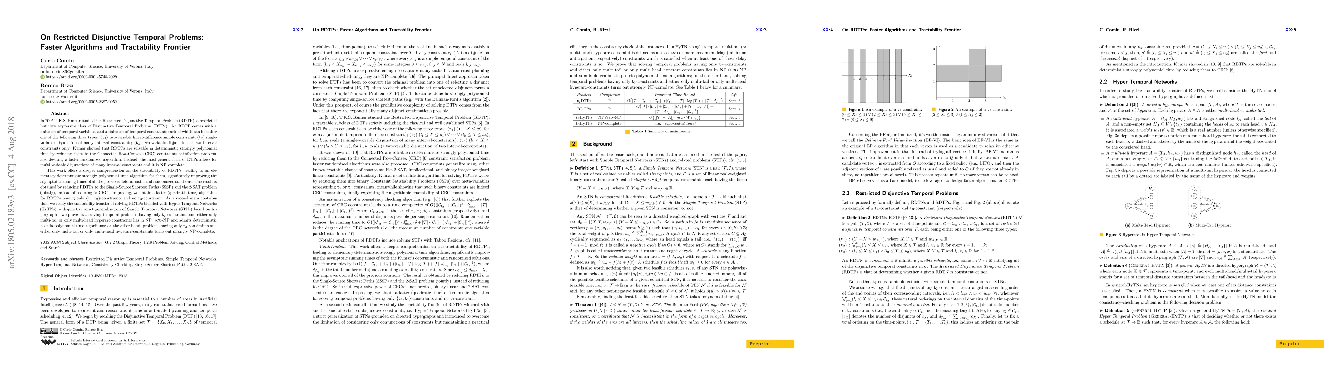 This paper presents a new deterministic strongly-polynomial time algorithm for solving Restricted Disjunctive Temporal Problems (RDTPs), improving upon previous methods. It also explores the tractability frontier of RDTPs, showing that certain RDTPs with Type-2 constraints are in NP and co-NP, while those with Type-3 constraints are strongly NP-complete.