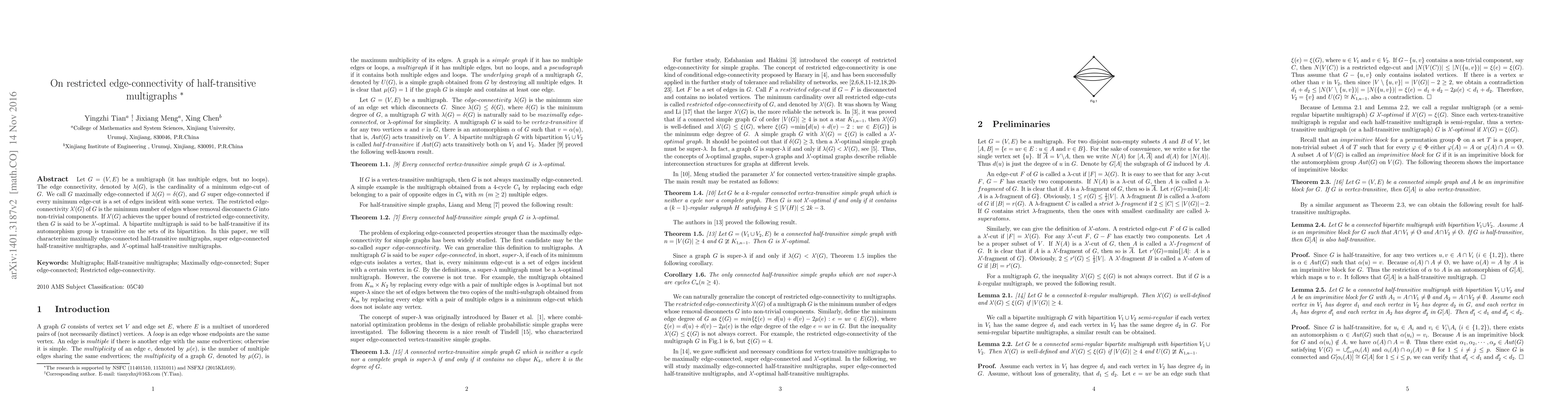 This paper investigates the edge-connectivity properties of half-transitive multigraphs, characterizing maximally edge-connected, super edge-connected, and $\lambda'$-optimal instances. It focuses on the conditions under which these special connectivity properties are achieved.