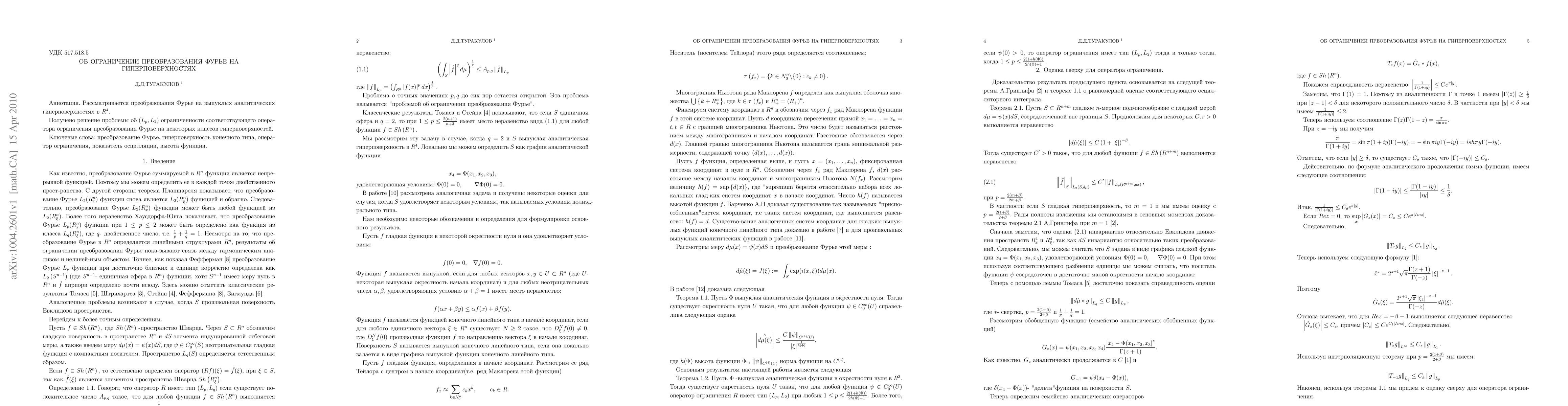 It is considered Fourier transform of convex analytic hypersufaces on $R^{4} $. We prove that the Fourier restriction operator associated to convex analytic hypersufaces is \textit{$(L_{p}, L_{2})$} bounded whenever $1\le p\le \frac{2h+2}{h+2}$. The result is sharp.