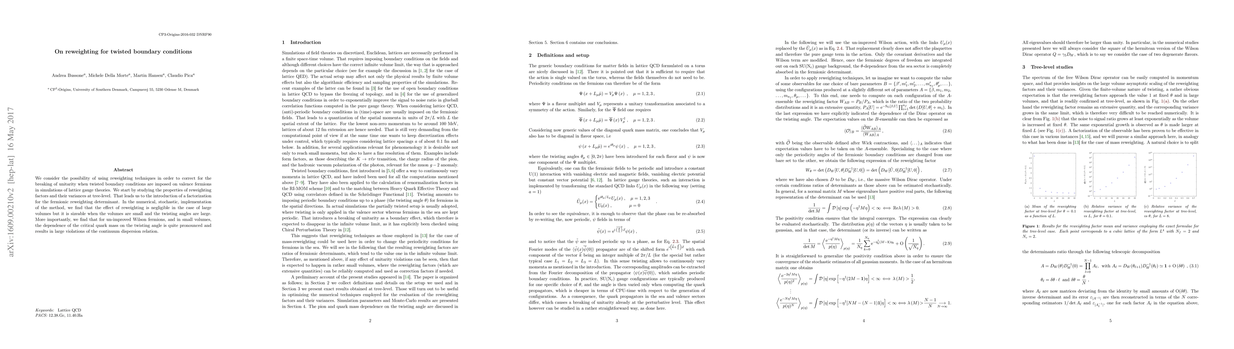 We consider the possibility of using reweighting techniques in order to correct for the breaking of unitarity when twisted boundary conditions are imposed on valence fermions in simulations of lattice gauge theories. We start by studying the properties of reweighting factors and their variances at tree-level. That leads us to the introduction of a factorization for the fermionic reweighting determinant. In the numerical, stochastic, implementation of the method, we find that the effect of reweighting is negligible in the case of large volumes but it is sizeable when the volumes are small and the twisting angles are large. More importantly, we find that for un-improved Wilson fermions, and in small volumes, the dependence of the critical quark mass on the twisting angle is quite pronounced and results in large violations of the continuum dispersion relation.