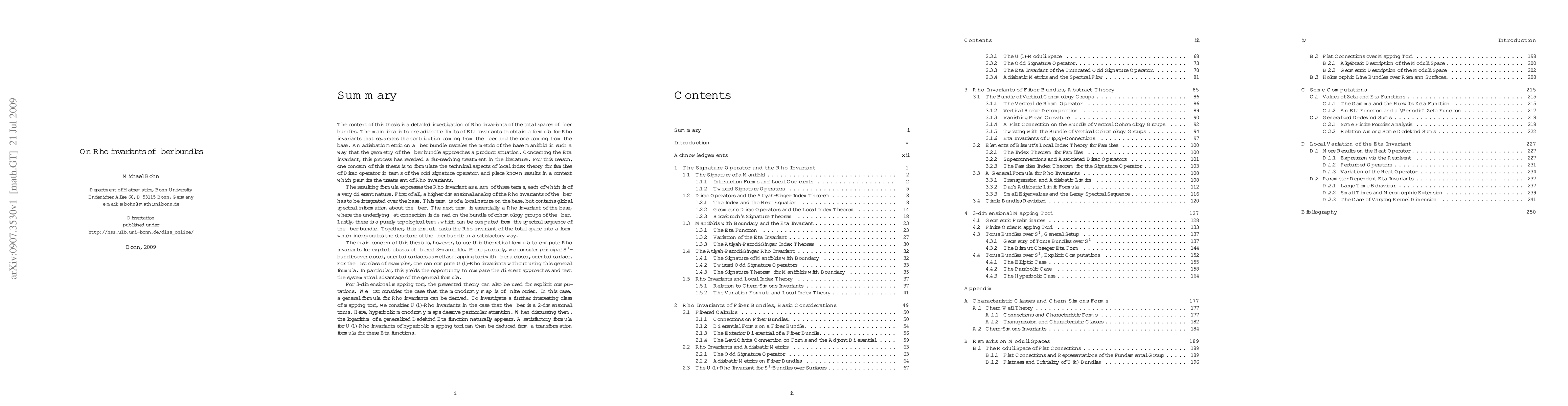 The paper investigates Rho invariants of fiber bundles using adiabatic limits of Eta invariants, focusing on local index theory for families of Dirac operators in terms of the odd signature operator.