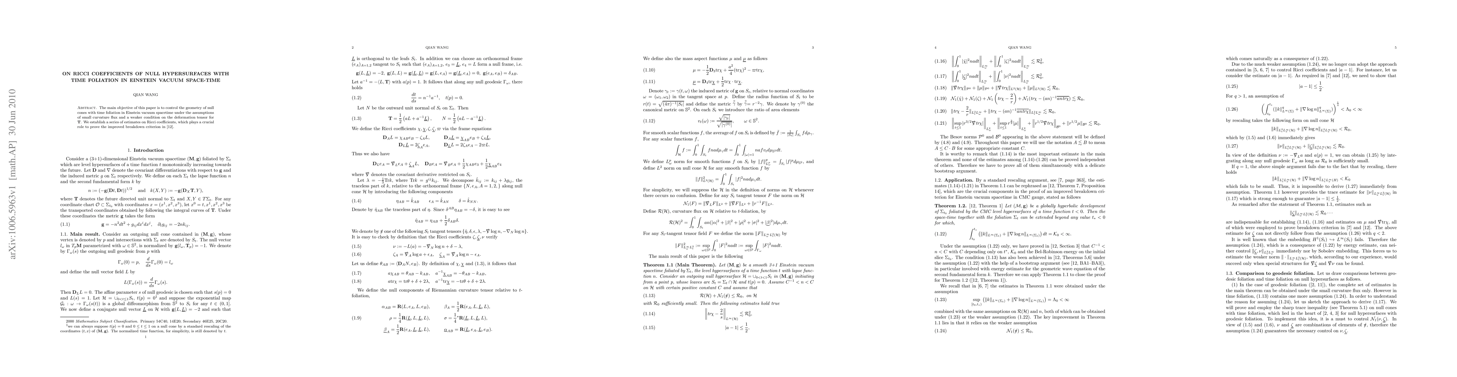 The main objective of this paper is to control the geometry of null cones with time foliation in Einstein vacuum spacetime under the assumptions of small curvature flux and a weaker condition on the deformation tensor for $\bT$. We establish a series of estimates on Ricci coefficients, which plays a crucial role to prove the improved breakdown criterion in [12].