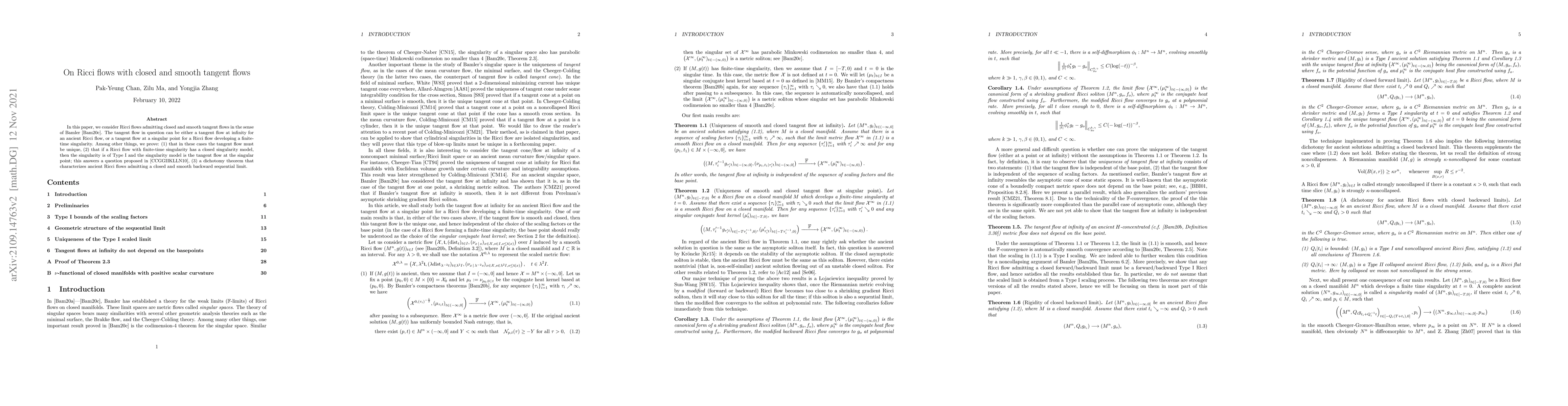 In this paper, we consider Ricci flows admitting closed and smooth tangent flows in the sense of Bamler [Bam20c]. The tangent flow in question can be either a tangent flow at infinity for an ancient Ricci flow, or a tangent flow at a singular point for a Ricci flow developing a finite-time singularity. Among other things, we prove: (1) that in these cases the tangent flow must be unique, (2) that if a Ricci flow with finite-time singularity has a closed singularity model, then the singularity is of Type I and the singularity model is the tangent flow at the singular point; this answers a question proposed in [CCGGIIKLLN10], (3) a dichotomy theorem that characterizes ancient Ricci flows admitting a closed and smooth backward sequential limit.