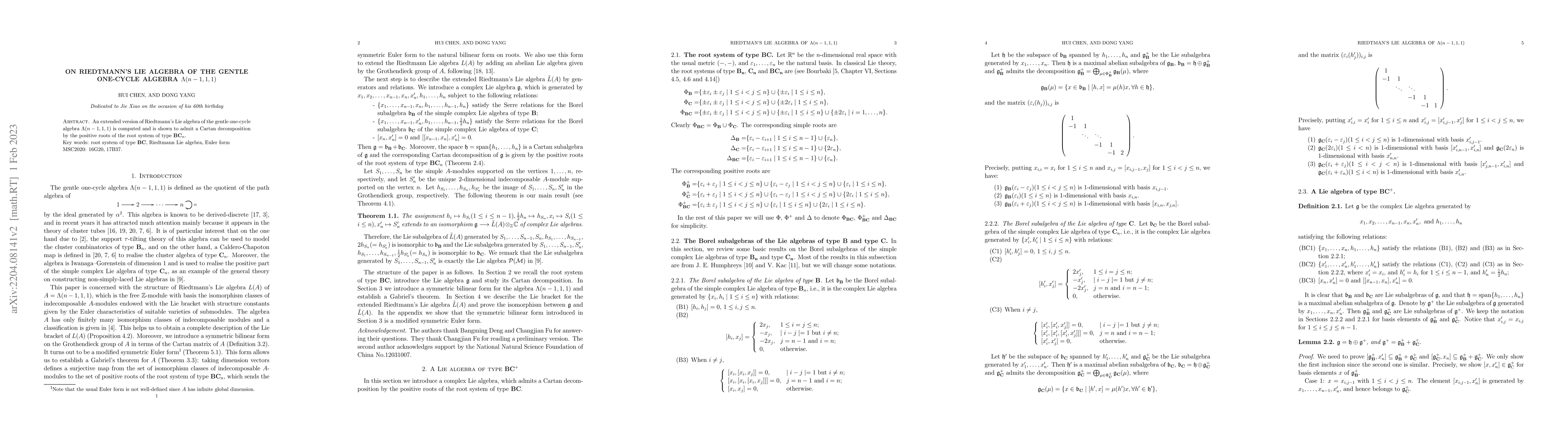An extended version of Riedtmann's Lie algebra of the gentle one-cycle algebra $\Lambda(n-1,1,1)$ is computed and is shown to admit a Cartan decomposition by the positive roots of the root system of type $\mathbf{BC}_n$.