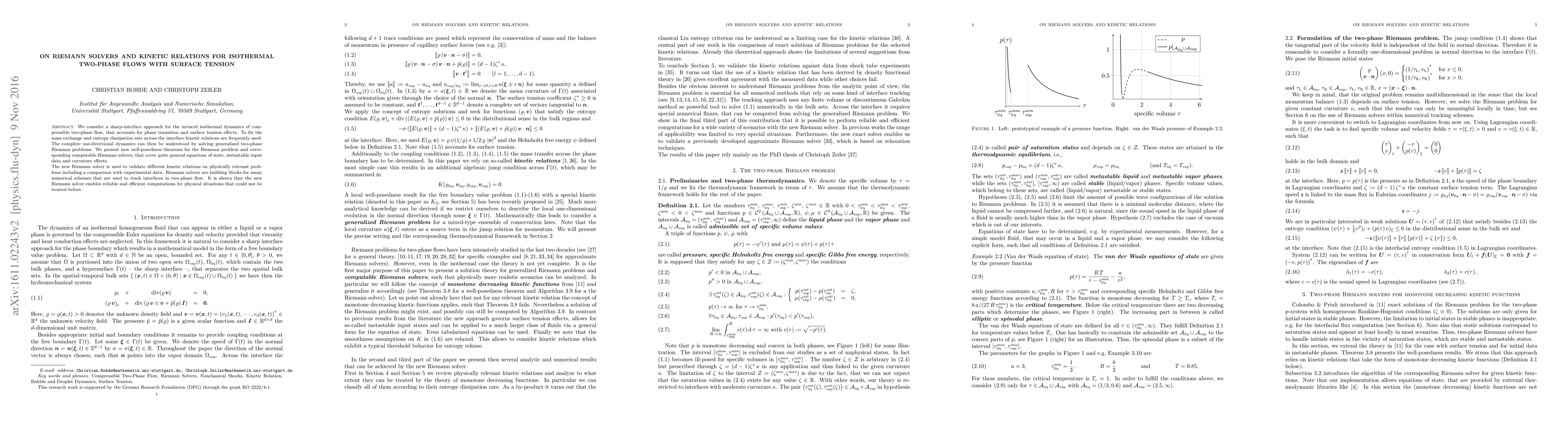 We consider a sharp-interface approach for the inviscid isothermal dynamics of compressible two-phase flow, that accounts for phase transition and surface tension effects. To fix the mass exchange and entropy dissipation rate across the interface kinetic relations are frequently used. The complete uni-directional dynamics can then be understood by solving generalized two-phase Riemann problems. We present new well-posedness theorems for the Riemann problem and corresponding computable Riemann solvers, that cover quite general equations of state, metastable input data and curvature effects. The new Riemann solver is used to validate different kinetic relations on physically relevant problems including a comparison with experimental data. Riemann solvers are building blocks for many numerical schemes that are used to track interfaces in two-phase flow. It is shown that the new Riemann solver enables reliable and efficient computations for physical situations that could not be treated before.