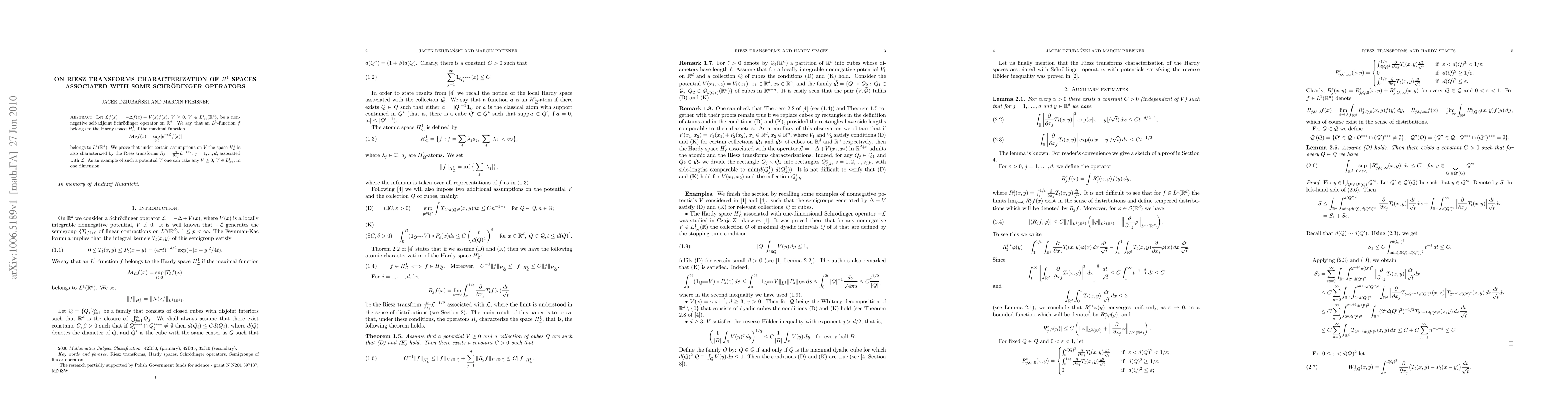 This research paper establishes a characterization of Hardy spaces H^1_L for non-negative Schr"odinger operators, linking the space to Riesz transforms under certain assumptions on the potential V.