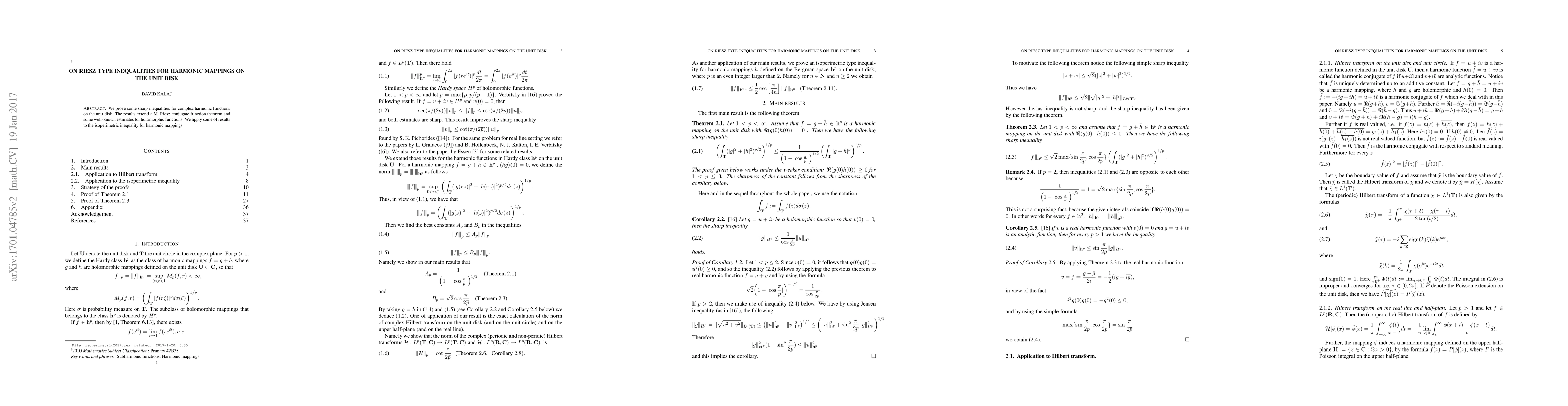 This paper establishes sharp inequalities for complex harmonic functions on the unit disk, extending the M. Riesz conjugate function theorem and known holomorphic estimates. It also applies these results to derive an isoperimetric inequality for harmonic mappings.