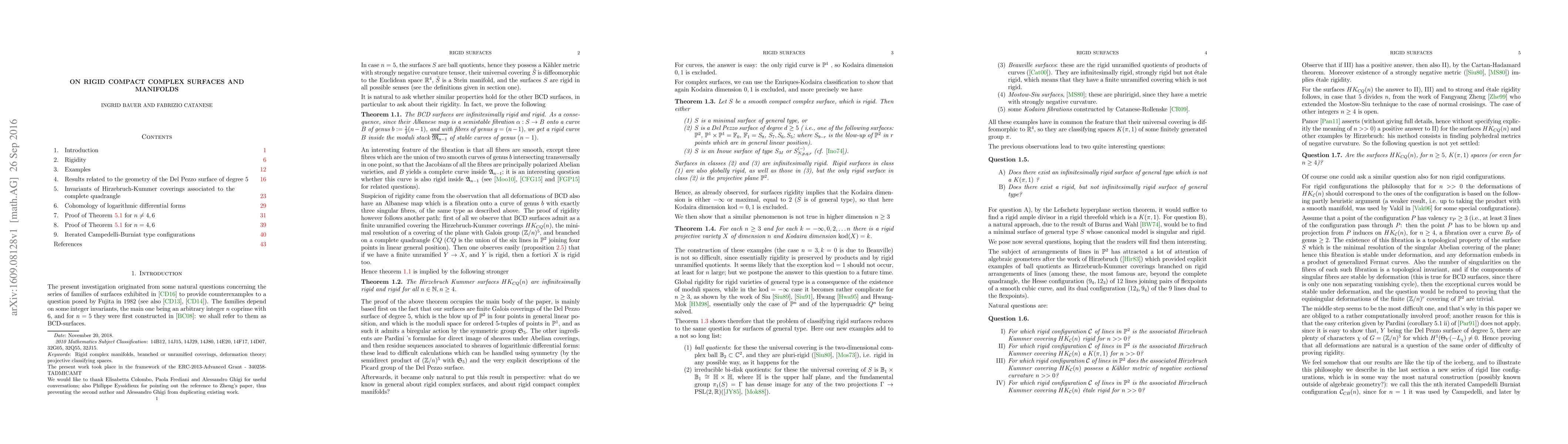 This paper explores various notions of rigidity in rigid compact complex manifolds, revealing that different notions coincide only for curves, with the projective line being the sole rigid curve. For surfaces, it shows that rigid non-minimal surfaces of general type are either Del Pezzo surfaces of degree >= 5 or Inoue surfaces. The main theorem asserts the infinitesimal rigidity of Hirzebruch Kummer coverings of exponent n >= 4 branched on a complete quadrangle.