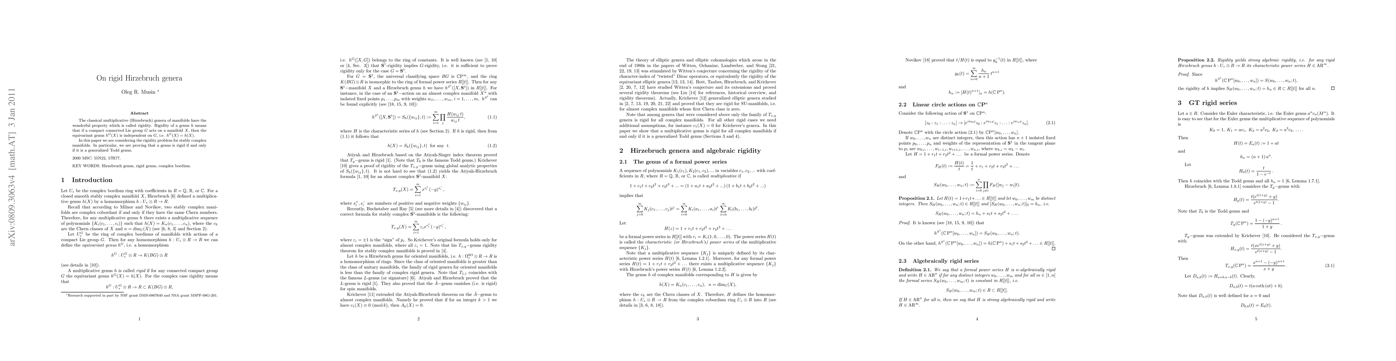 This paper investigates the rigidity property of classical Hirzebruch genera in the context of complex manifolds, proving that a genus is rigid if and only if it is a generalized Todd genus. The study focuses on the equivariant genus's independence from the action of compact connected Lie groups on manifolds.