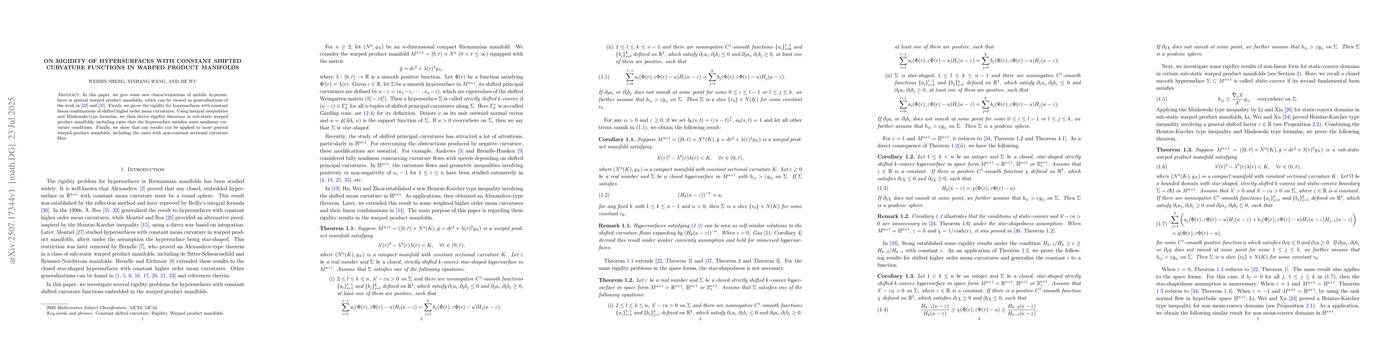 In this paper, we give some new characterizations of umbilic hypersurfaces in general warped product manifolds, which can be viewed as generalizations of the work in \cite{KLP18} and \cite{WX14}. Firstly, we prove the rigidity for hypersurfaces with constant linear combinations of shifted higher order mean curvatures. Using integral inequalities and Minkowski-type formulas, we then derive rigidity theorems in sub-static warped product manifolds, including cases that the hypersurface satisfies some nonlinear curvature conditions. Finally, we show that our results can be applied to more general warped product manifolds, including the cases with non-constant sectional curvature fiber.