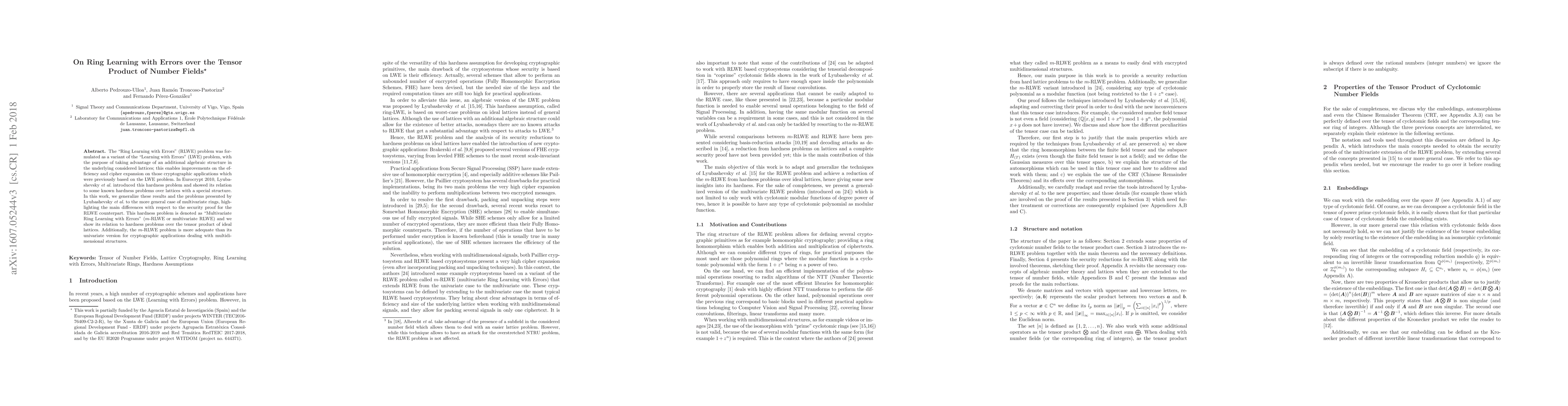 This paper generalizes the "Ring Learning with Errors" (RLWE) problem to multivariate rings, demonstrating its enhanced efficiency and suitability for cryptographic applications with multidimensional structures compared to the univariate version. It also establishes its relation to hardness problems over the tensor product of ideal lattices.