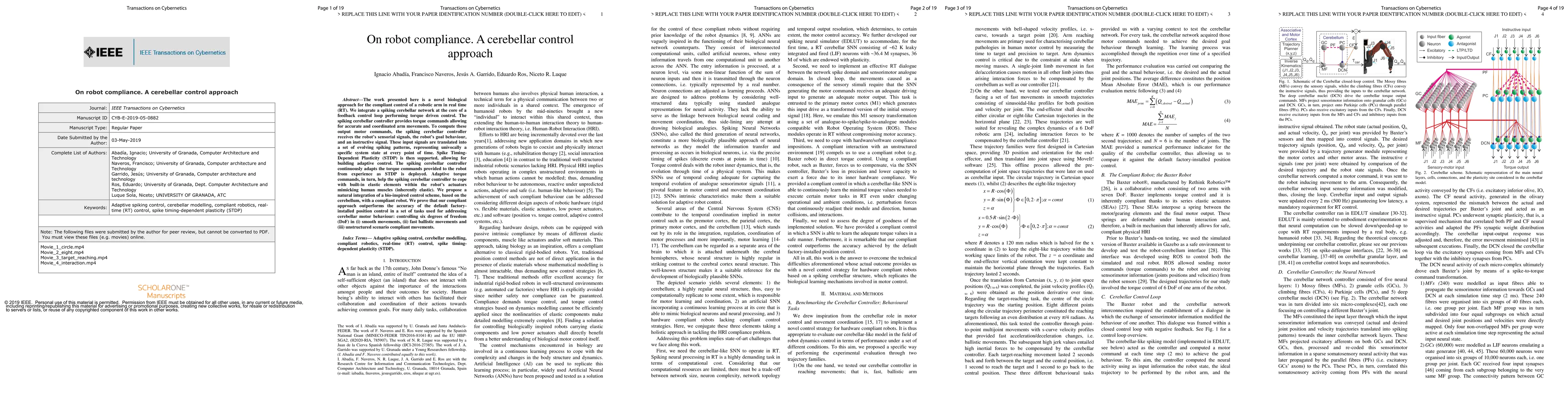This paper introduces a novel cerebellar control approach for real-time compliant robotic arm movement, integrating a spiking cerebellar network within a feedback loop. The method uses spike-timing-dependent plasticity for adaptive control, demonstrating superior accuracy over traditional position control in various tasks.