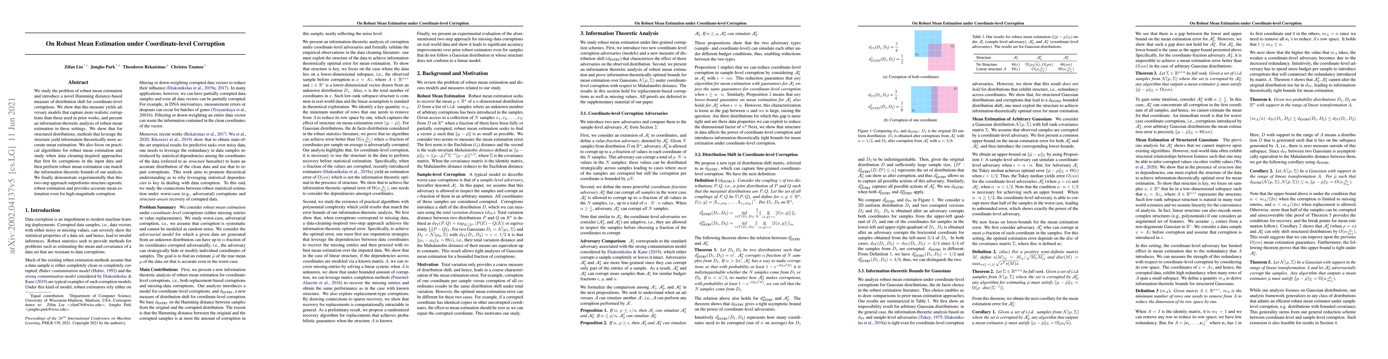 This paper introduces a novel Hamming distance-based measure for robust mean estimation under coordinate-level corruptions, demonstrating that it captures more realistic corruptions than previous models. It also presents an information-theoretic analysis showing that structured distribution methods yield more accurate mean estimation and experimentally validates a two-step data cleaning approach that outperforms structure-agnostic methods.