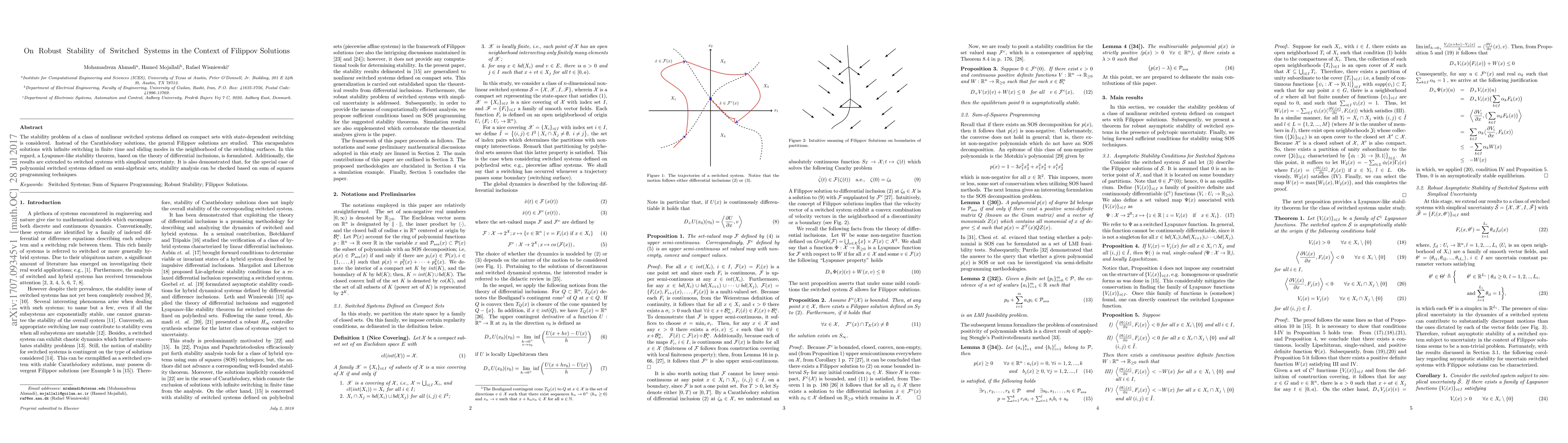 This paper investigates the robust stability of nonlinear switched systems with state-dependent switching using Filippov solutions, formulating a Lyapunov-like stability theorem based on differential inclusions. It extends results to systems with simplicial uncertainty and applies sum of squares programming for stability analysis in polynomial systems.