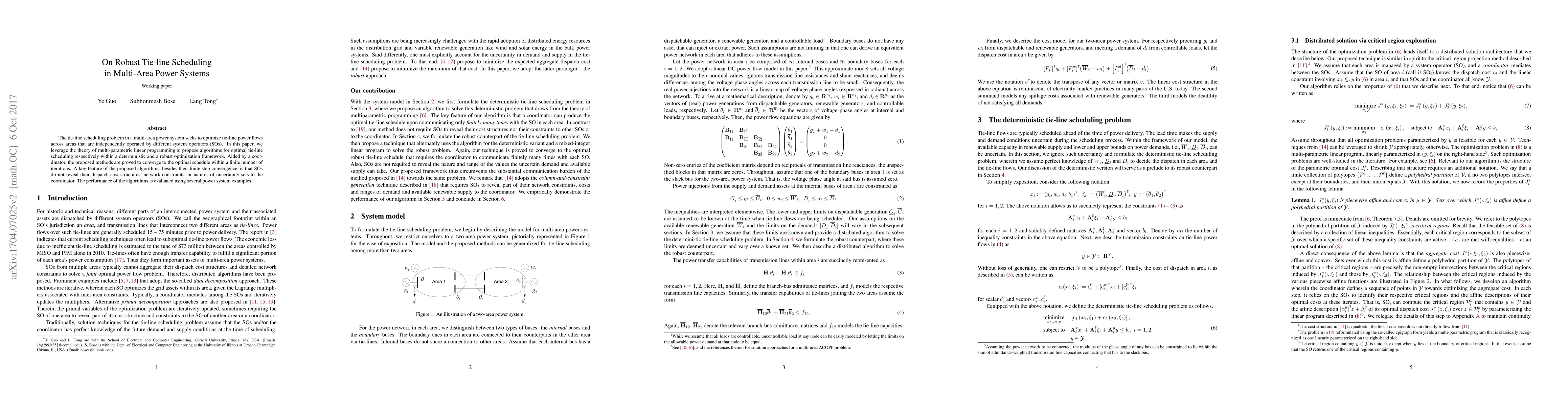 This paper proposes algorithms for optimizing tie-line power flows in multi-area power systems using a coordinator-based approach, ensuring privacy of information exchanges and convergence to optimal schedules.