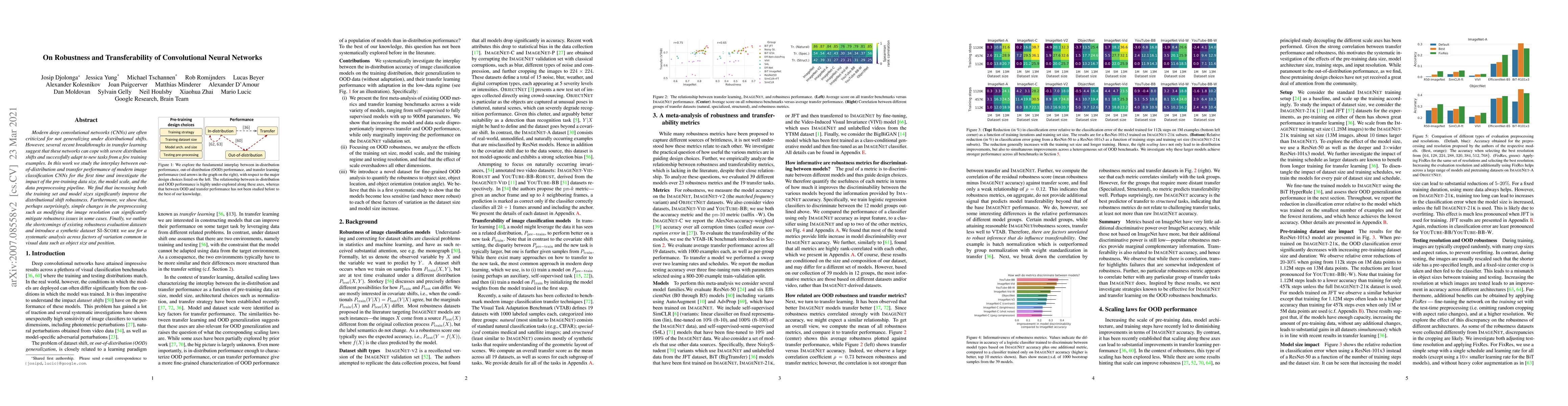 Researchers investigated how well convolutional neural networks perform on new tasks when trained on different data distributions. They found that larger models and more training data can improve robustness to distribution shifts.