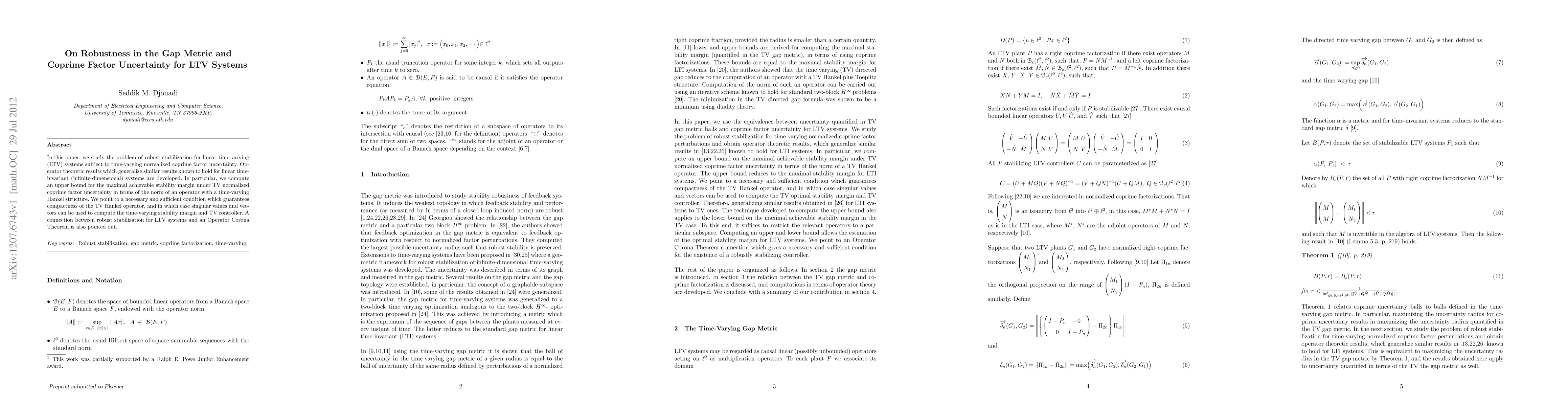 In this paper, we study the problem of robust stabilization for linear time-varying (LTV) systems subject to time-varying normalized coprime factor uncertainty. Operator theoretic results which generalize similar results known to hold for linear time-invariant (infinite-dimensional) systems are developed. In particular, we compute an upper bound for the maximal achievable stability margin under TV normalized coprime factor uncertainty in terms of the norm of an operator with a time-varying Hankel structure. We point to a necessary and sufficient condition which guarantees compactness of the TV Hankel operator, and in which case singular values and vectors can be used to compute the time-varying stability margin and TV controller. A connection between robust stabilization for LTV systems and an Operator Corona Theorem is also pointed out.