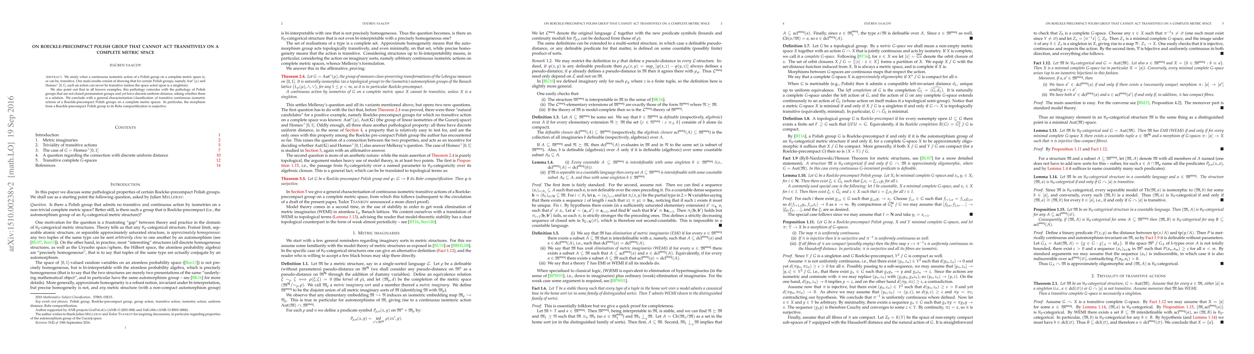 We study when a continuous isometric action of a Polish group on a complete metric space is, or can be, transitive. Our main results consist of showing that certain Polish groups, namely $\mathrm{Aut}^*(\mu)$ and $\mathrm{Homeo}^+[0,1]$, such an action can never be transitive (unless the space acted upon is a singleton). We also point out "circumstantial evidence" that this pathology could be related to that of Polish groups which are not closed permutation groups and yet have discrete uniform distance, and give a general characterisation of continuous isometric action of a Roeckle-precompact Polish group on a complete metric space is transitive. It follows that the morphism from a Roeckle-precompact Polish group to its Bohr compactification is surjective.
