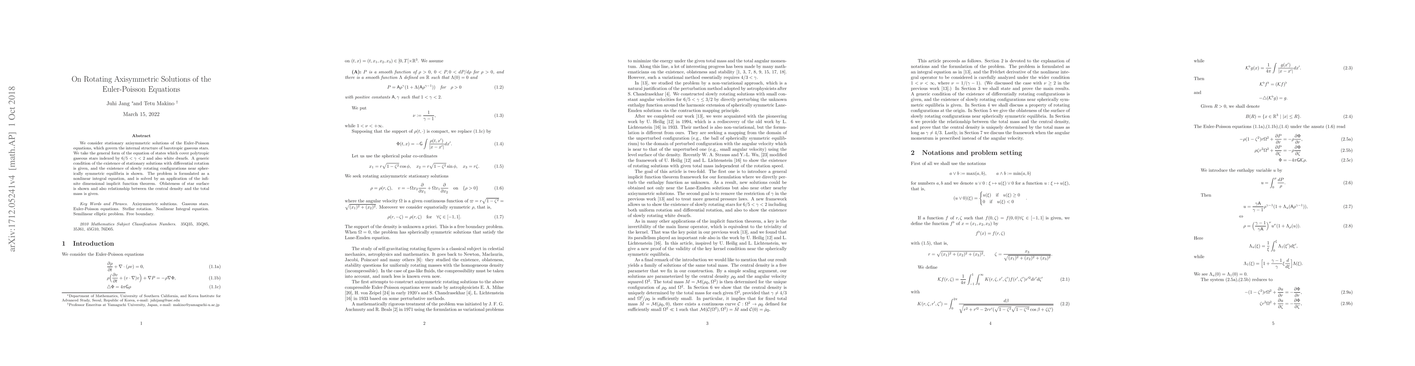 This paper investigates stationary axisymmetric solutions of the Euler-Poisson equations for barotropic gaseous stars, exploring configurations with differential rotation and the existence of slowly rotating oblate configurations. The study applies the infinite dimensional implicit function theorem to solve the formulated nonlinear integral equation, providing insights into the relationship between central density and total mass.