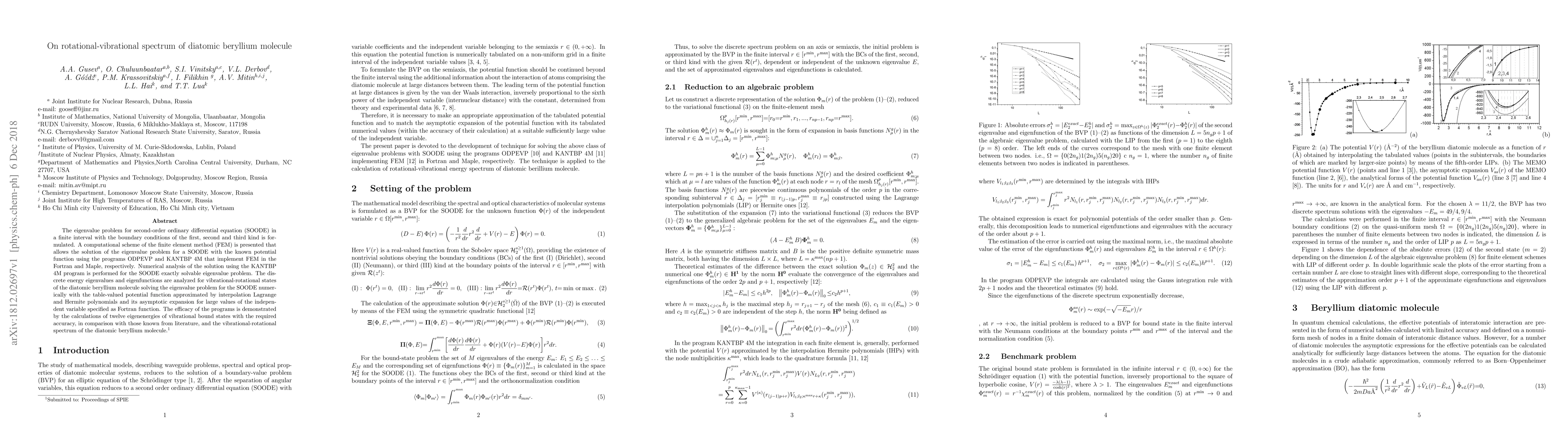 This paper formulates an eigenvalue problem for a second-order ordinary differential equation (SOODE) and presents a finite element method (FEM) computational scheme to solve it. The study numerically analyzes the rotational-vibrational spectrum of the diatomic beryllium molecule, demonstrating the accuracy of the method through comparison with known eigenenergies.