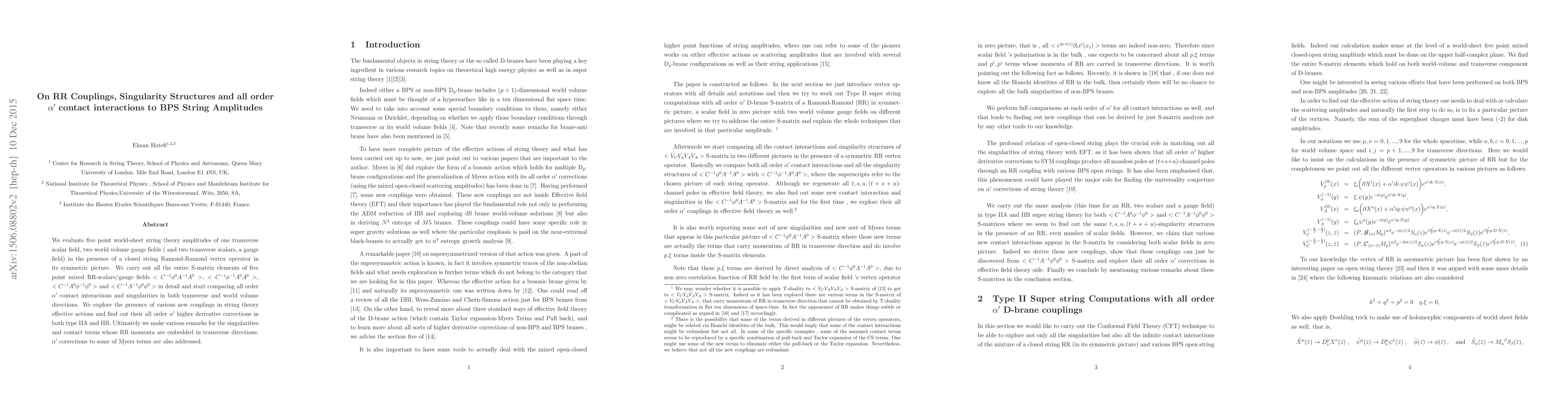 Researchers studied string theory amplitudes with various interactions, revealing new couplings and higher derivative corrections, which shed light on singularities and contact terms in both transverse and world volume directions.