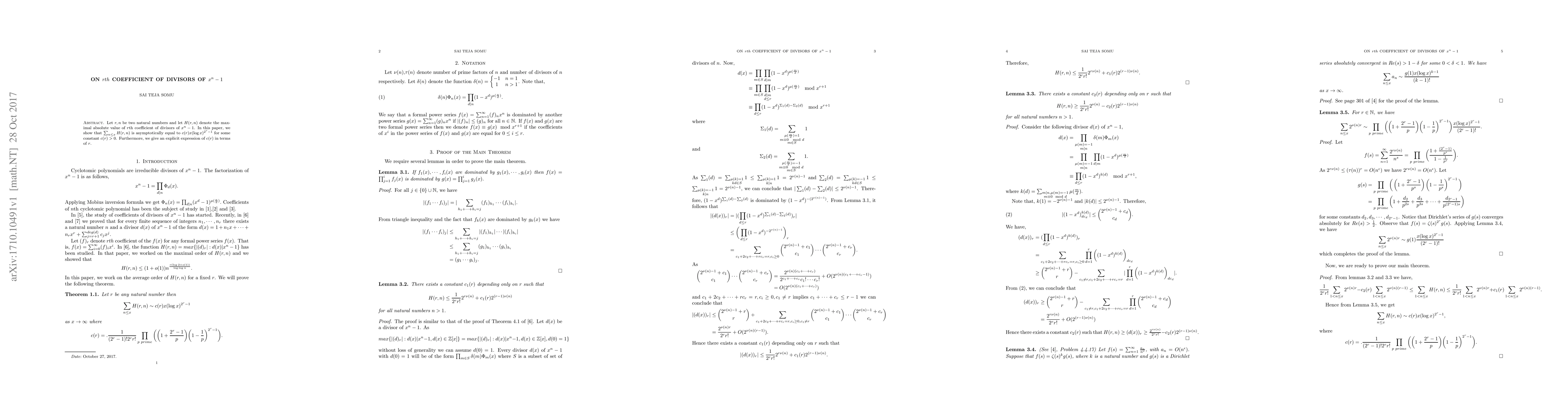 Researchers found that the sum of the maximal absolute values of coefficients for divisors of x^n-1 grows asymptotically like c(r)x(log x)^(2^r-1), where c(r) is a positive constant dependent on r.