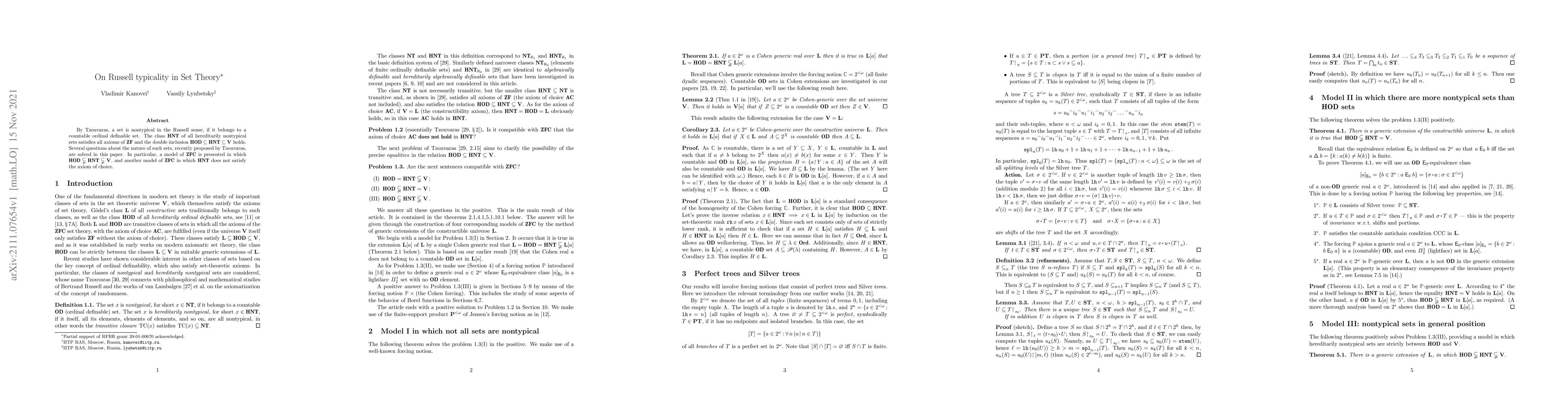 Researchers explore sets that are 'nontypical' in the Russell sense, finding a model where HOD is a proper subset of HNT, and another model where HNT fails to satisfy the axiom of choice.