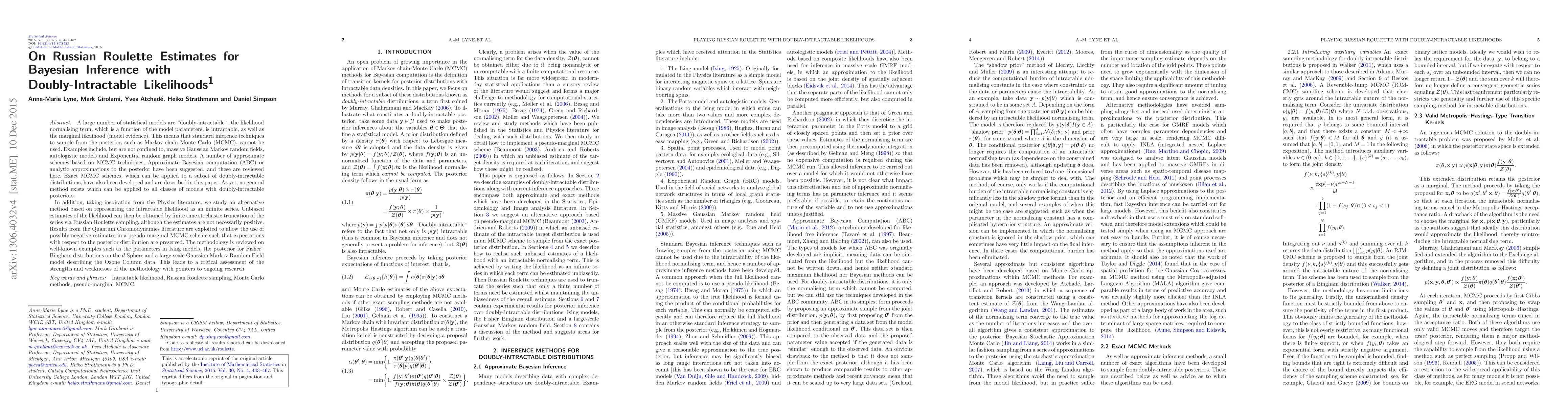 Researchers developed a new method for Bayesian inference on 'doubly-intractable' models, using Russian Roulette sampling to estimate the intractable likelihood term, which can produce negative estimates that preserve posterior expectations.