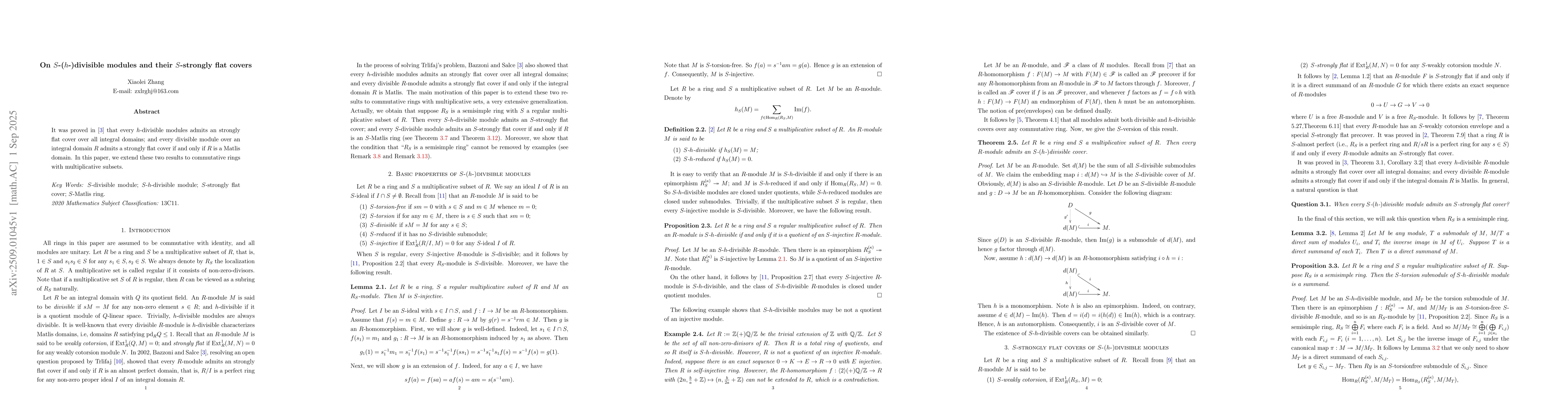 It was proved in [3] that every h-divisible modules admits an strongly flat cover over all integral domains; and every divisible module over an integral domain R admits a strongly flat cover if and only if R is a Matlis domain. In this paper, we extend these two results to commutative rings with multiplicative subsets.