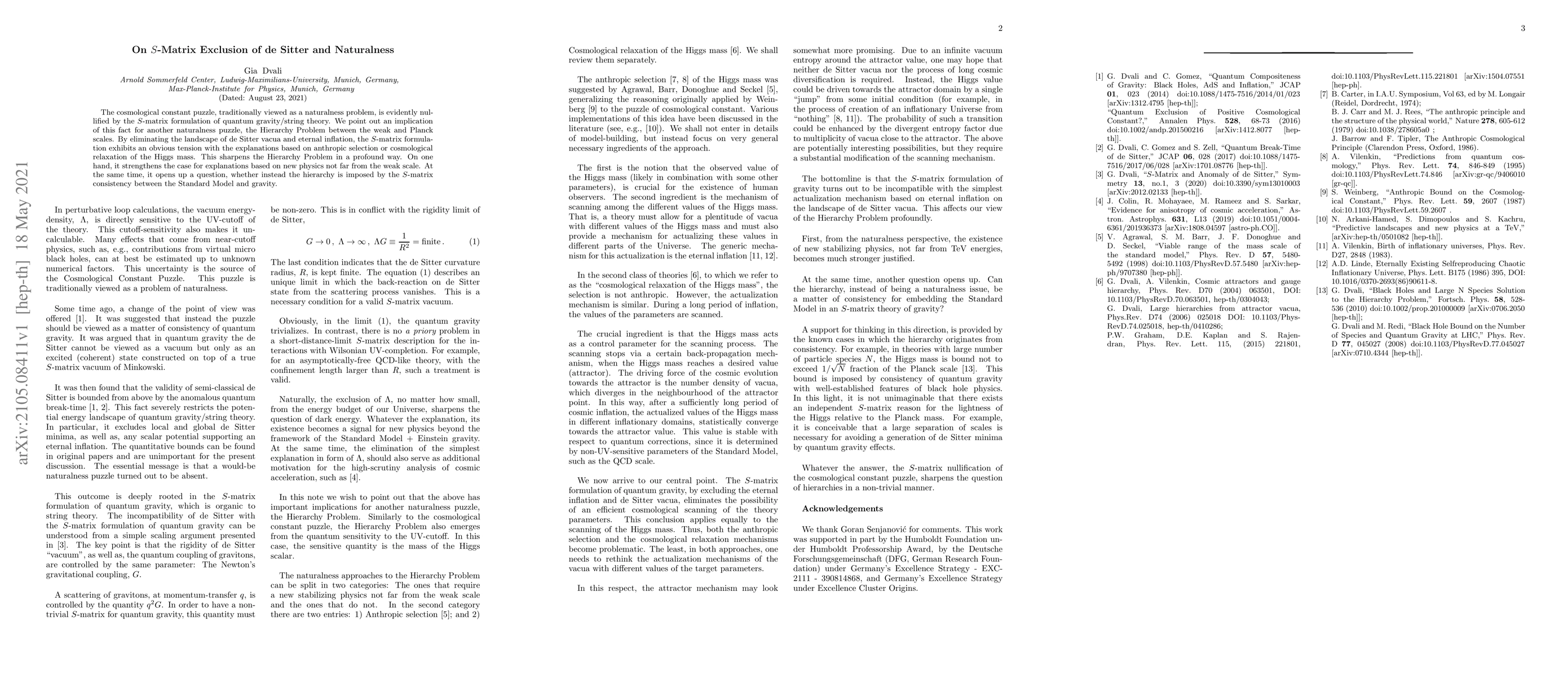 The S-matrix formulation of quantum gravity eliminates de Sitter vacua and eternal inflation, sharpening the Hierarchy Problem and suggesting that hierarchy might be imposed by S-matrix consistency between the Standard Model and gravity.