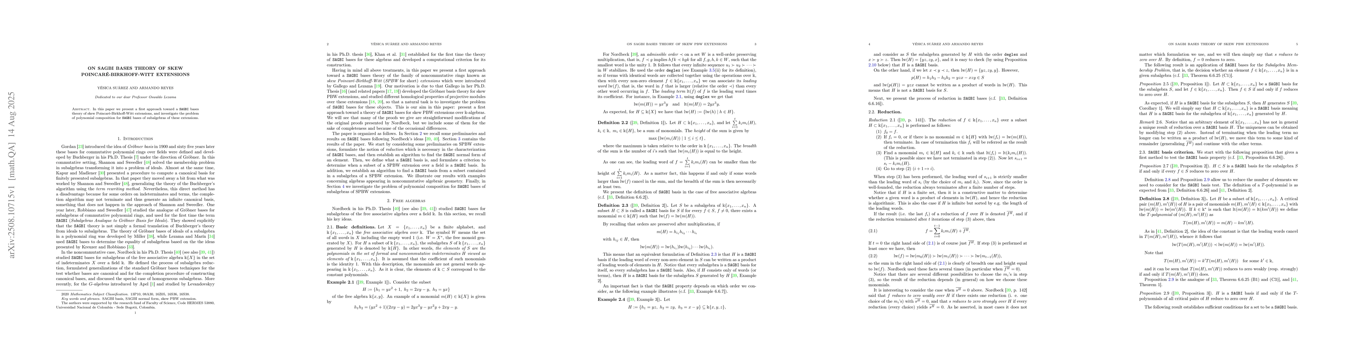 In this paper we present a first approach toward a \texttt{SAGBI} bases theory of skew Poincar\'e-Birkhoff-Witt extensions, and investigate the problem of polynomial composition for \texttt{SAGBI} bases of subalgebras of these extensions.
