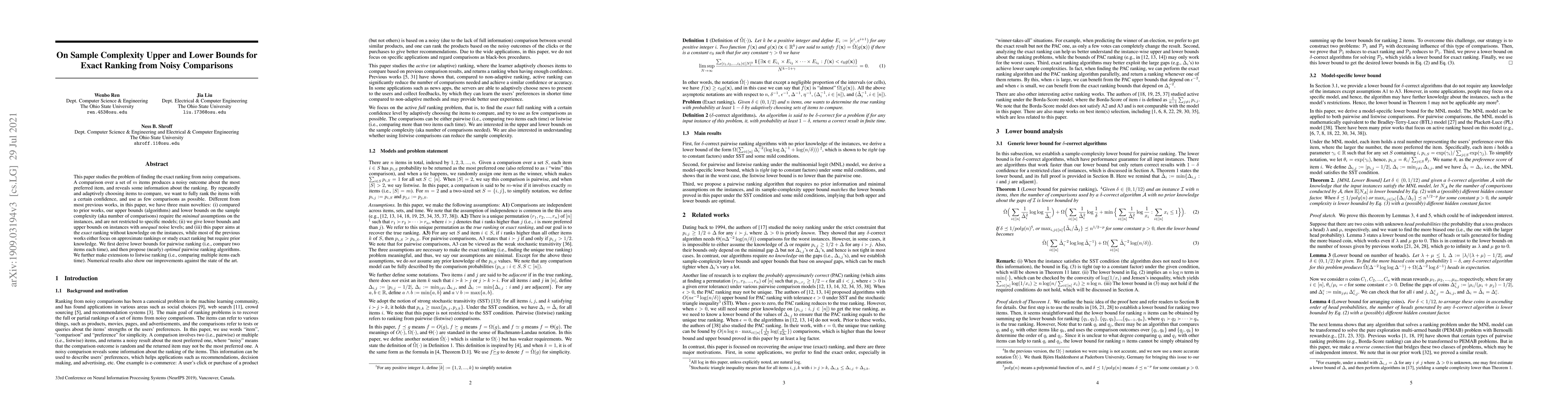 A new research paper sets bounds for exactly ranking items from noisy comparisons, offering nearly optimal algorithms and improving upon existing state-of-the-art methods with minimal assumptions.