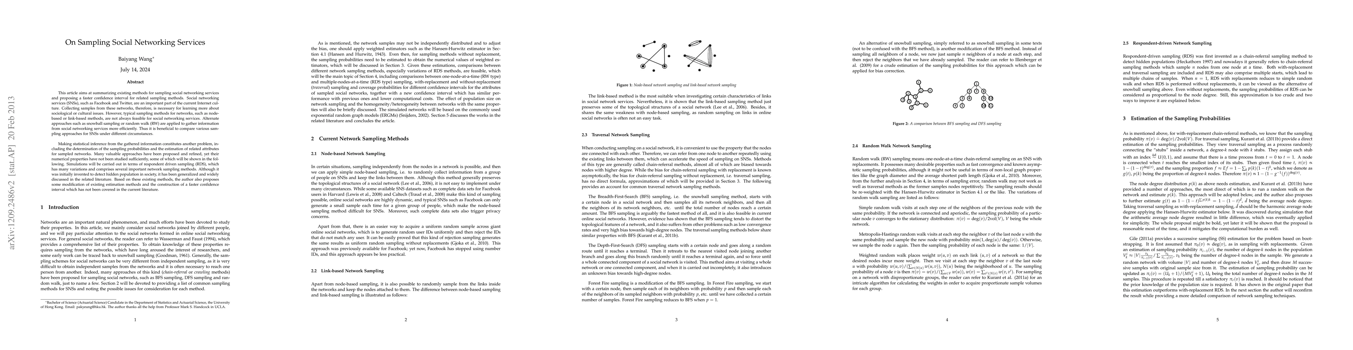 This article aims at summarizing the existing methods for sampling social networking services and proposing a faster confidence interval for related sampling methods. It also includes comparisons of common network sampling techniques.