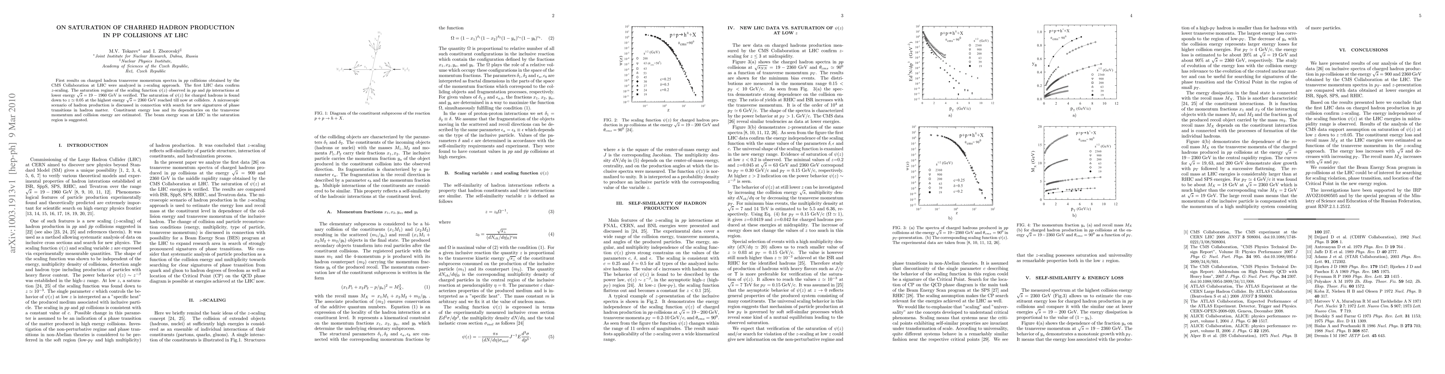This paper reports on the CMS Collaboration's analysis of charged hadron production in pp collisions at the LHC, confirming z-scaling and verifying the saturation regime of the scaling function psi(z) down to z=0.05 at the highest energy reached. The study also discusses potential new signatures of phase transitions in hadron matter and suggests a beam energy scan at the LHC to explore the saturation region further.