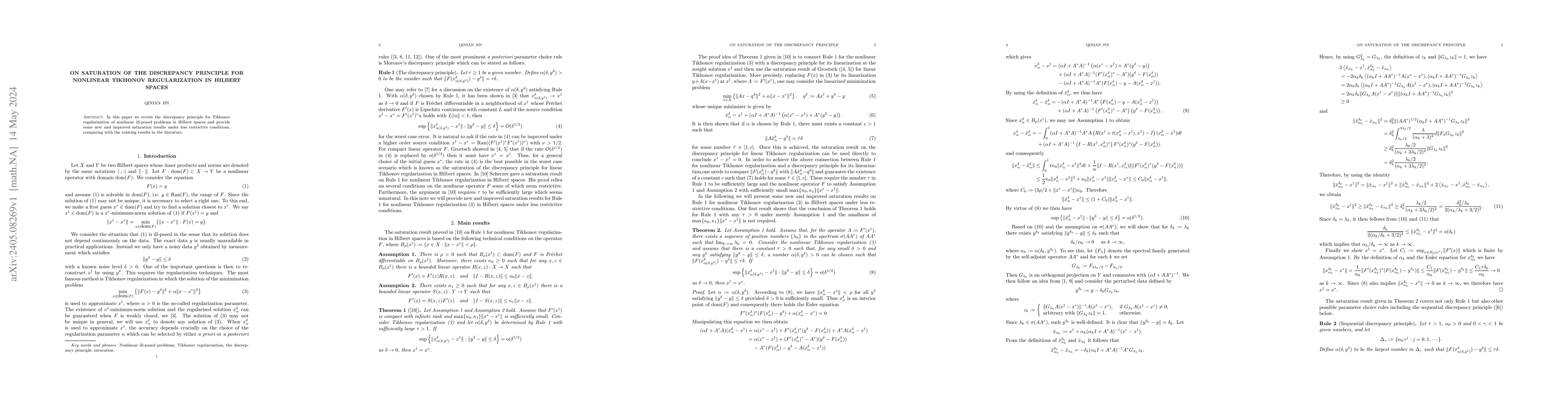 This paper examines the discrepancy principle in nonlinear Tikhonov regularization for ill-posed problems in Hilbert spaces, presenting enhanced saturation results with less stringent assumptions compared to prior studies.