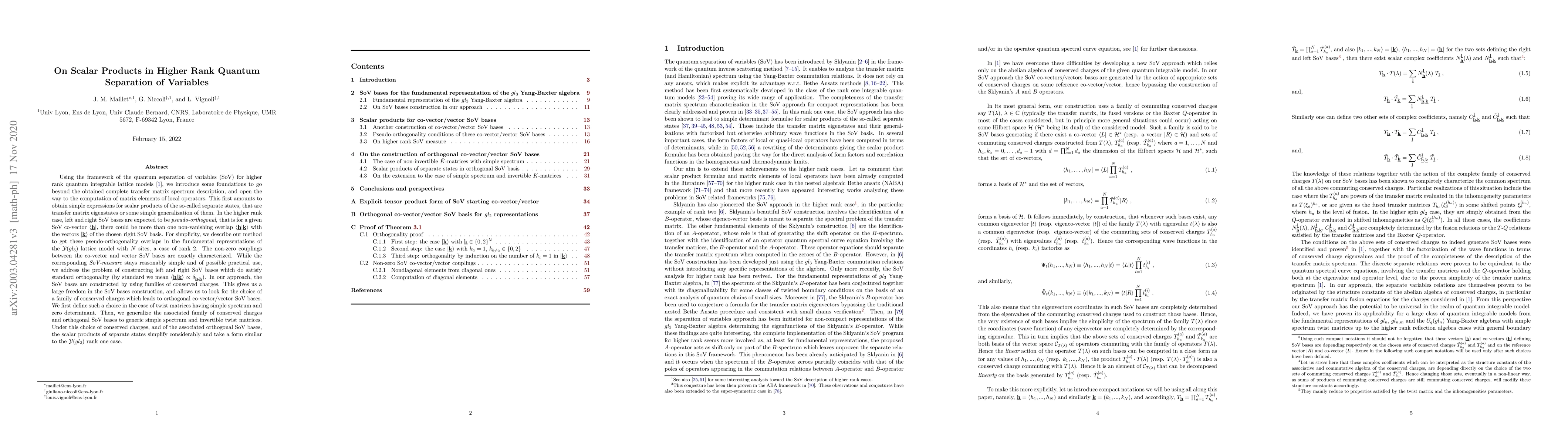 Using the framework of the quantum separation of variables (SoV) for higher rank quantum integrable lattice models [1], we introduce some foundations to go beyond the obtained complete transfer matrix spectrum description, and open the way to the computation of matrix elements of local operators. This first amounts to obtain simple expressions for scalar products of the so-called separate states (transfer matrix eigenstates or some simple generalization of them). In the higher rank case, left and right SoV bases are expected to be pseudo-orthogonal, that is for a given SoV co-vector, there could be more than one non-vanishing overlap with the vectors of the chosen right SoV basis. For simplicity, we describe our method to get these pseudo-orthogonality overlaps in the fundamental representations of the $\mathcal{Y}(gl_3)$ lattice model with $N$ sites, a case of rank 2. The non-zero couplings between the co-vector and vector SoV bases are exactly characterized. While the corresponding SoV-measure stays reasonably simple and of possible practical use, we address the problem of constructing left and right SoV bases which do satisfy standard orthogonality. In our approach, the SoV bases are constructed by using families of conserved charges. This gives us a large freedom in the SoV bases construction, and allows us to look for the choice of a family of conserved charges which leads to orthogonal co-vector/vector SoV bases. We first define such a choice in the case of twist matrices having simple spectrum and zero determinant. Then, we generalize the associated family of conserved charges and orthogonal SoV bases to generic simple spectrum and invertible twist matrices. Under this choice of conserved charges, and of the associated orthogonal SoV bases, the scalar products of separate states simplify considerably and take a form similar to the $\mathcal{Y}(gl_2)$ rank one case.
