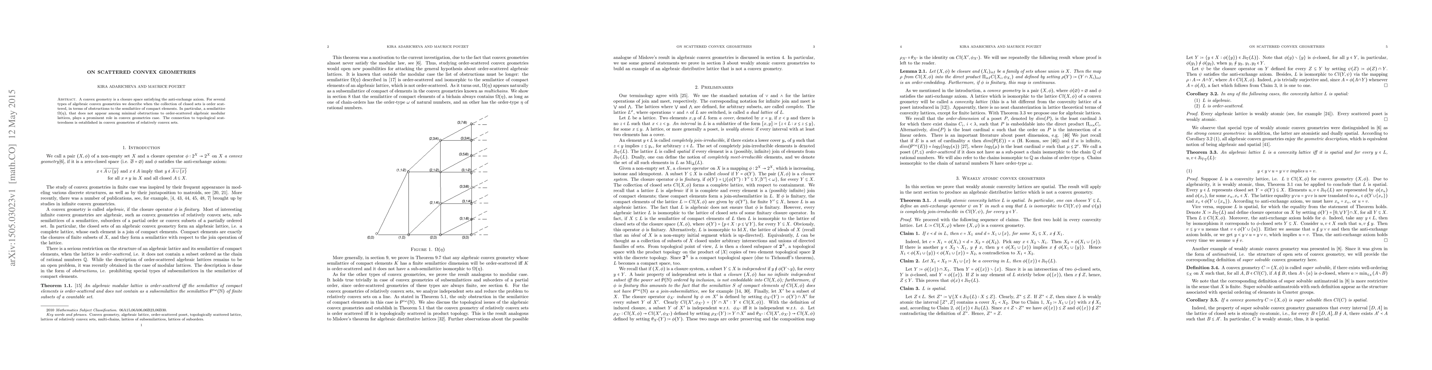 This paper explores the conditions under which the collection of closed sets in various algebraic convex geometries is order scattered, focusing on the role of a specific semilattice $\Omega(\eta)$ and its relation to topological scatteredness in relatively convex sets. The study identifies obstructions to order-scattered algebraic modular lattices.