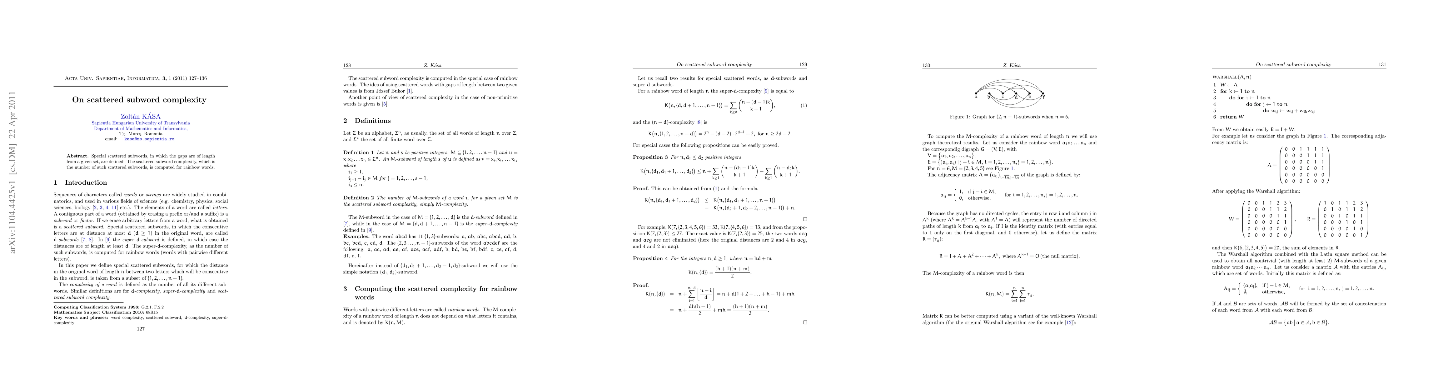 This paper defines special scattered subwords with specified gap lengths and computes their complexity for rainbow words, providing insights into the structure and enumeration of these subwords.