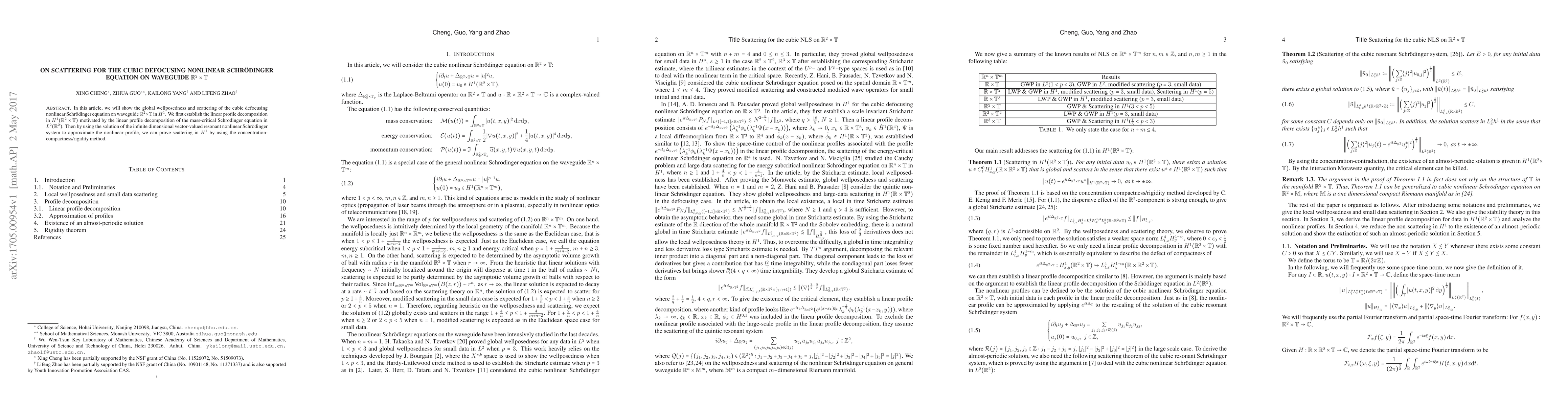 This paper demonstrates global wellposedness and scattering for the cubic defocusing nonlinear Schrödinger equation on a waveguide $\mathbb{R}^2\times \mathbb{T}$ in $H^1$ by employing a linear profile decomposition and a concentration-compactness/rigidity method. The study uses an infinite dimensional vector-valued system to approximate nonlinear profiles and proves scattering via the established decomposition.