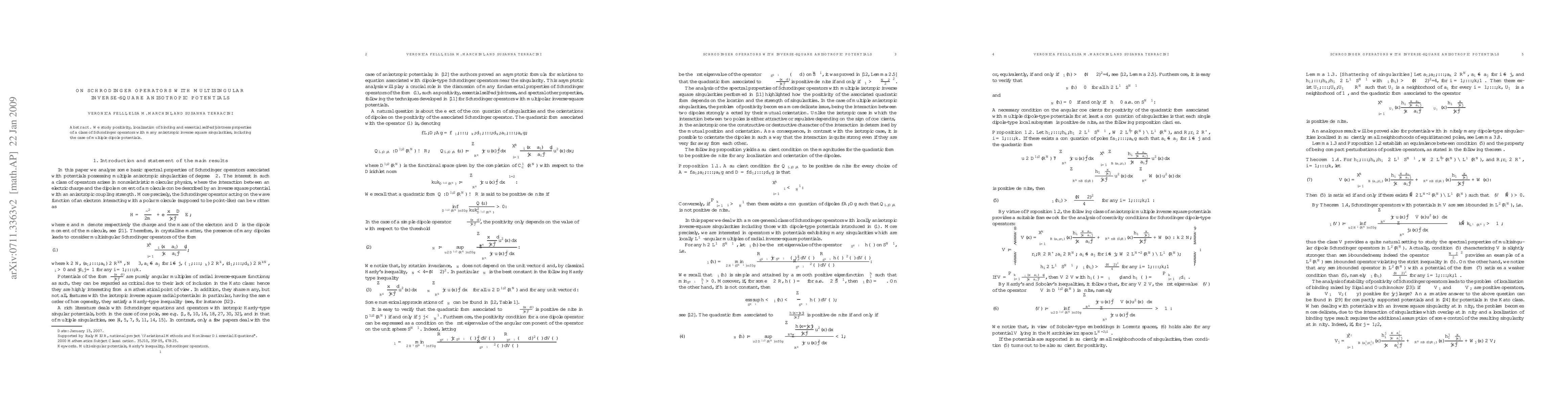 Summary: This paper investigates the positivity, localization of binding, and essential self-adjointness of Schrödinger operators featuring multiple anisotropic inverse-square singularities, such as multi-dipole potentials. The study focuses on the behavior of these operators under complex singularities.