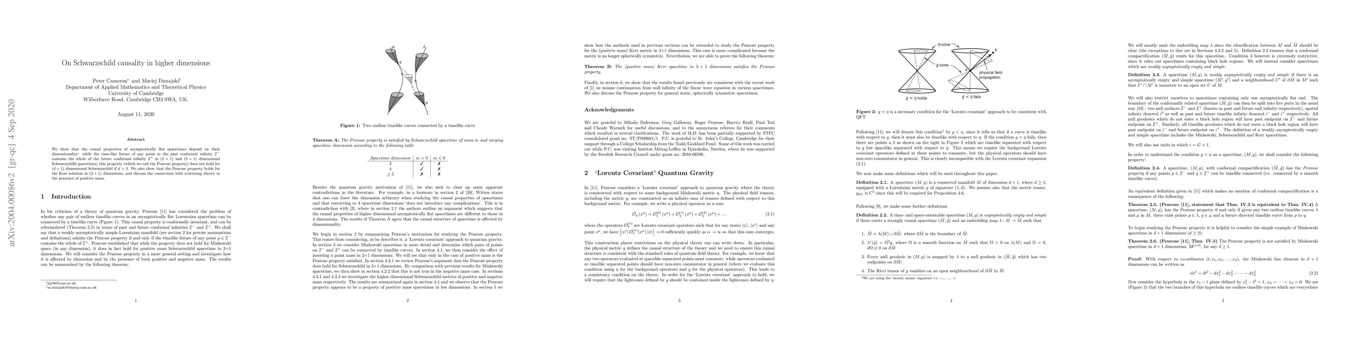 The research paper explores how the dimensionality of Schwarzschild spacetimes affects their causal properties, finding that the Penrose property only holds in 2D and 3D spacetimes.